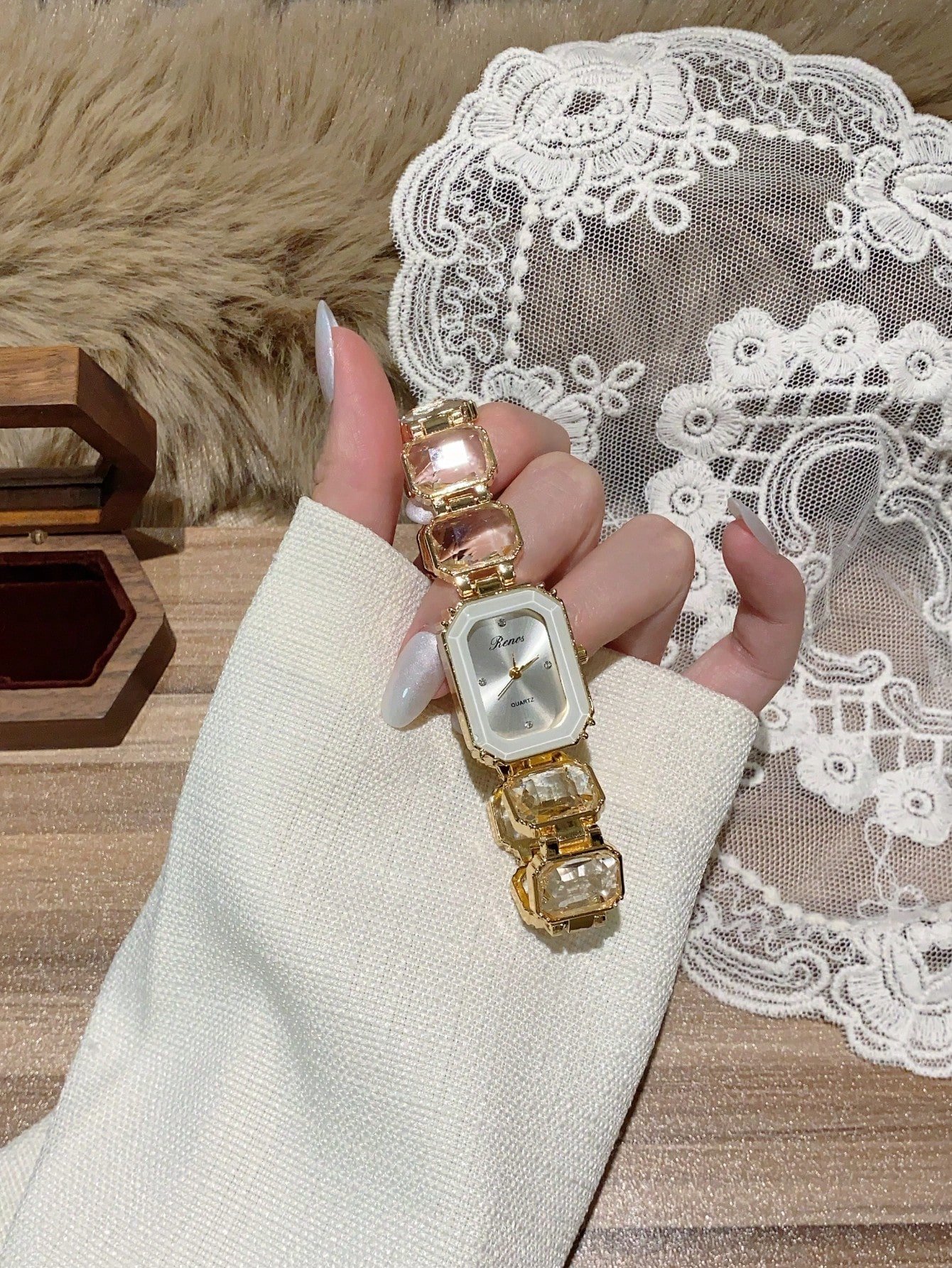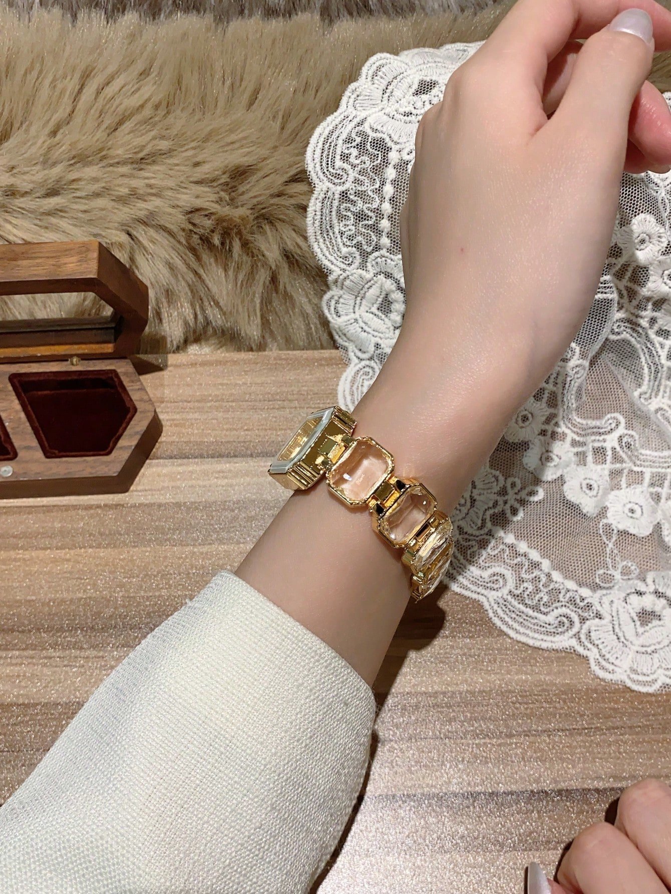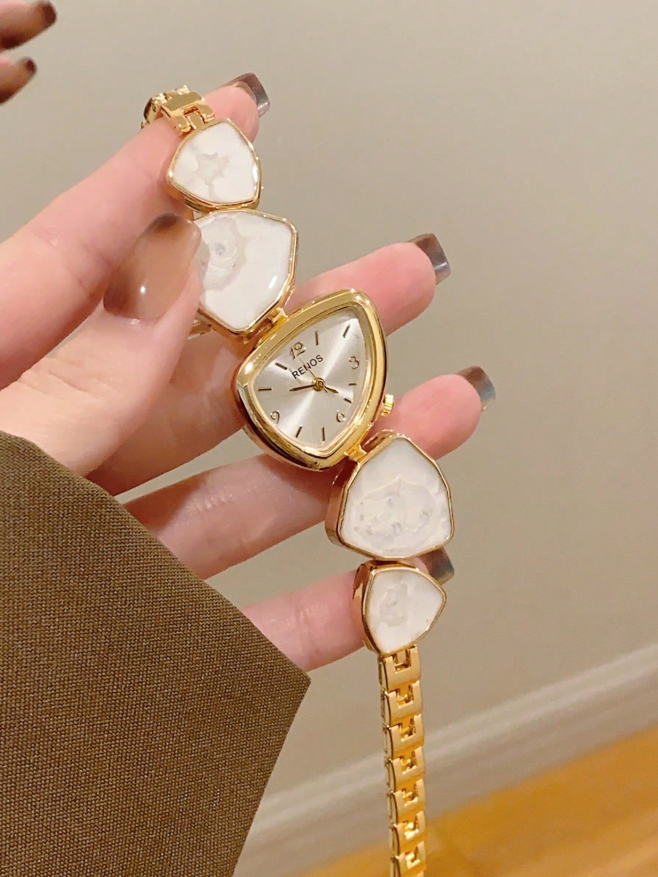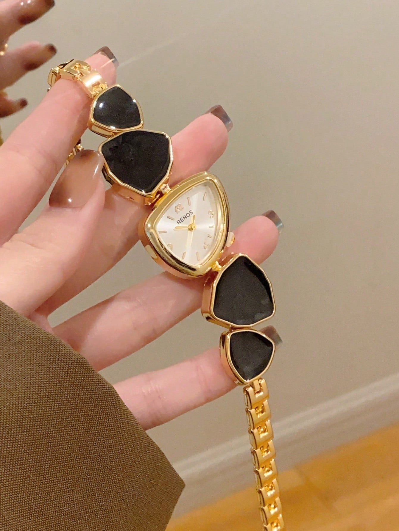 1 pièce Montre-bracelet en alliage doré asymétrique pour femmes, cadran avec chiffres arabes à la mode, mouvement à quartz, bracelet réglable, convient pour le port quotidien et les cadeaux de vacances