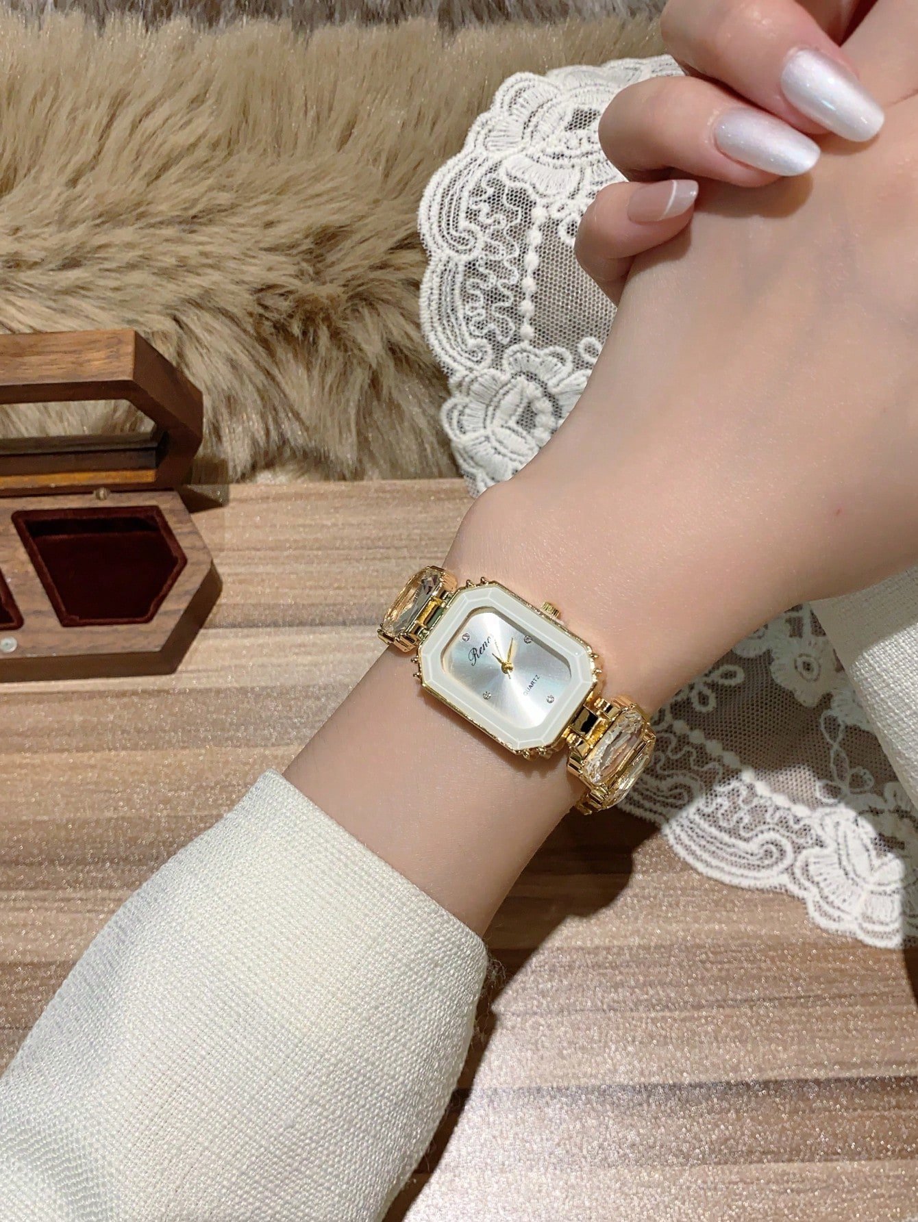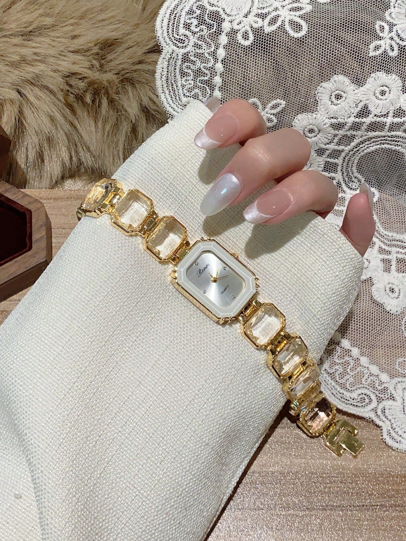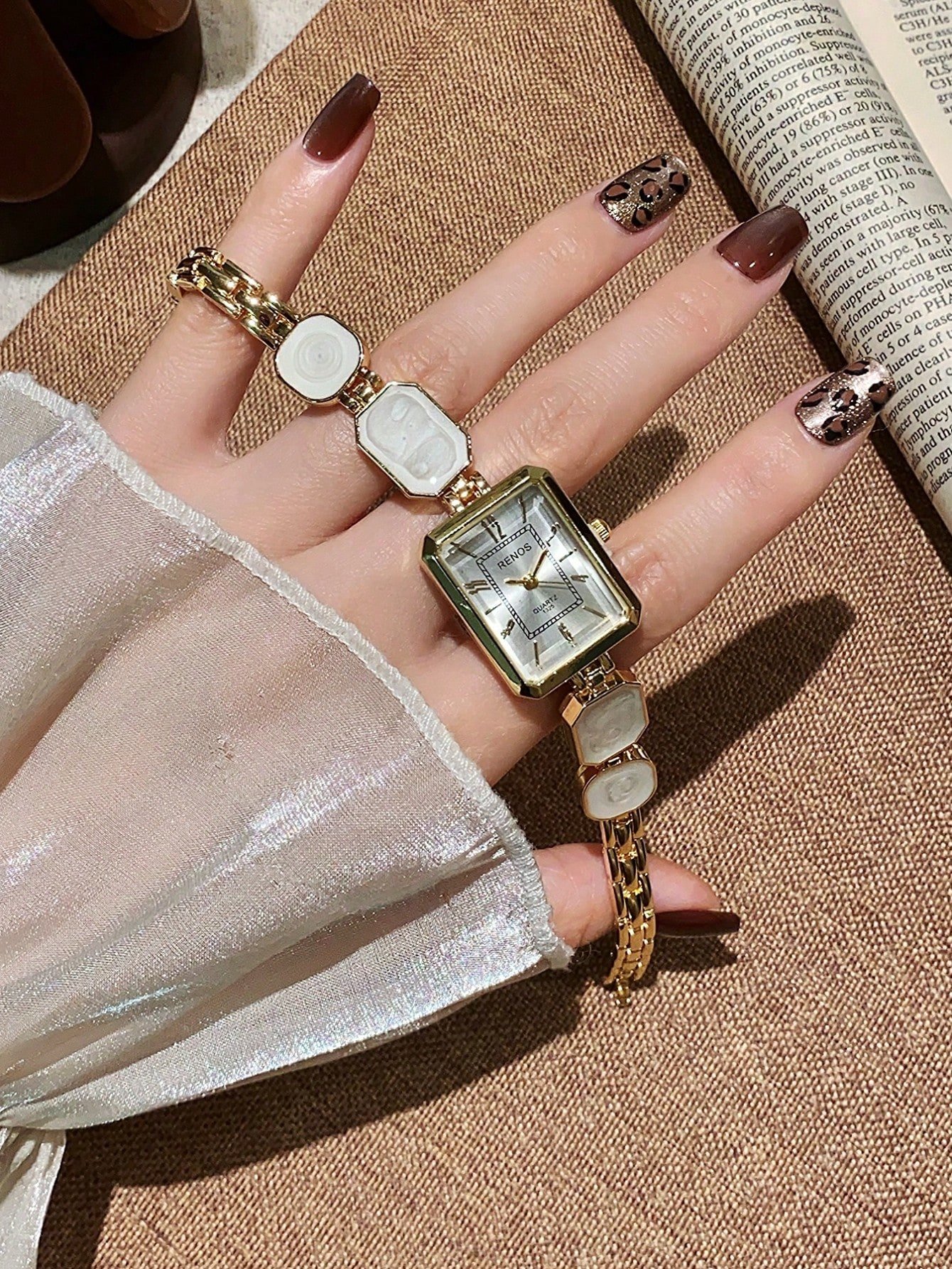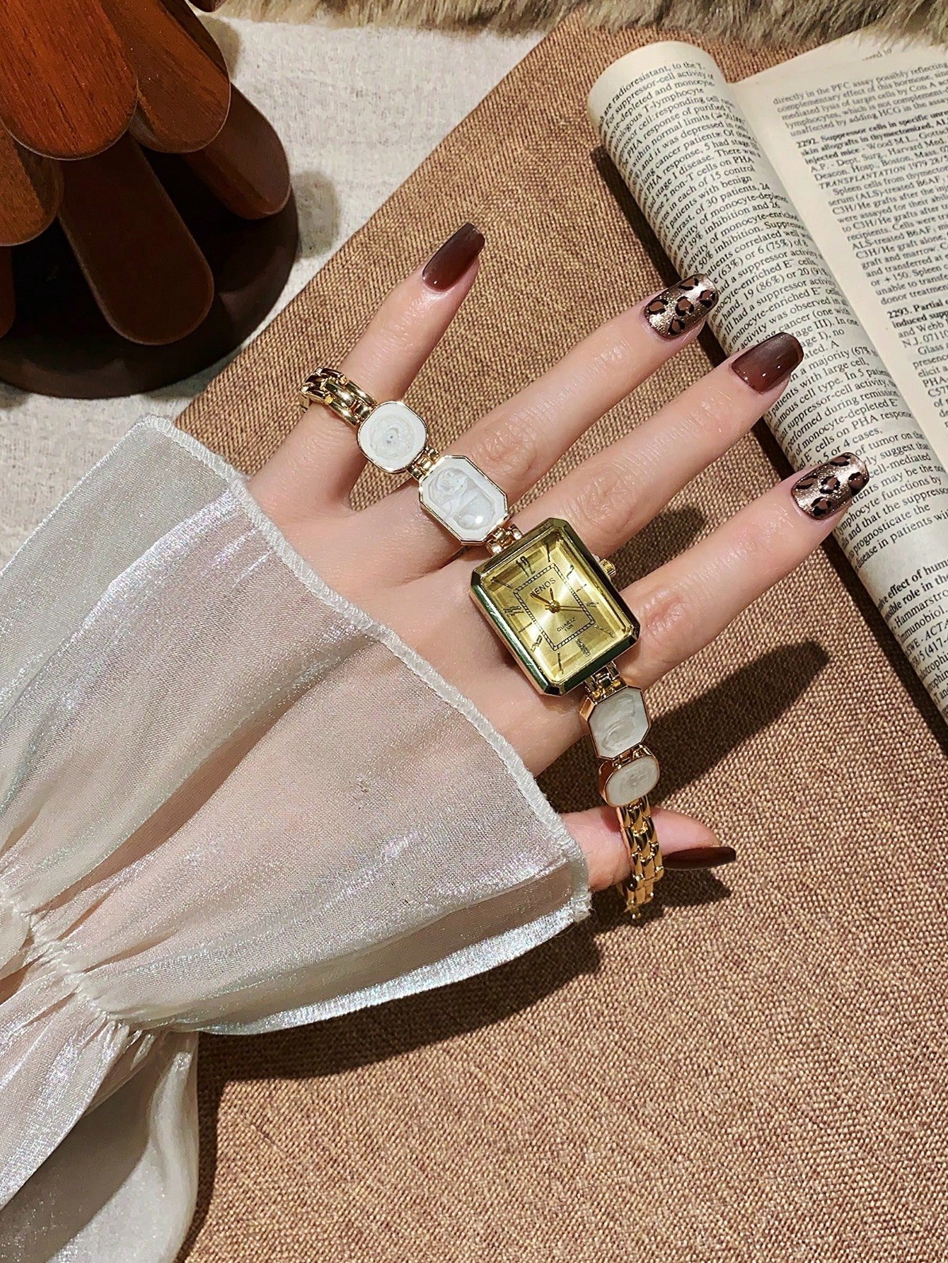 1 pièce Montre-bracelet en alliage doré asymétrique pour femmes, cadran avec chiffres arabes à la mode, mouvement à quartz, bracelet réglable, convient pour le port quotidien et les cadeaux de vacances