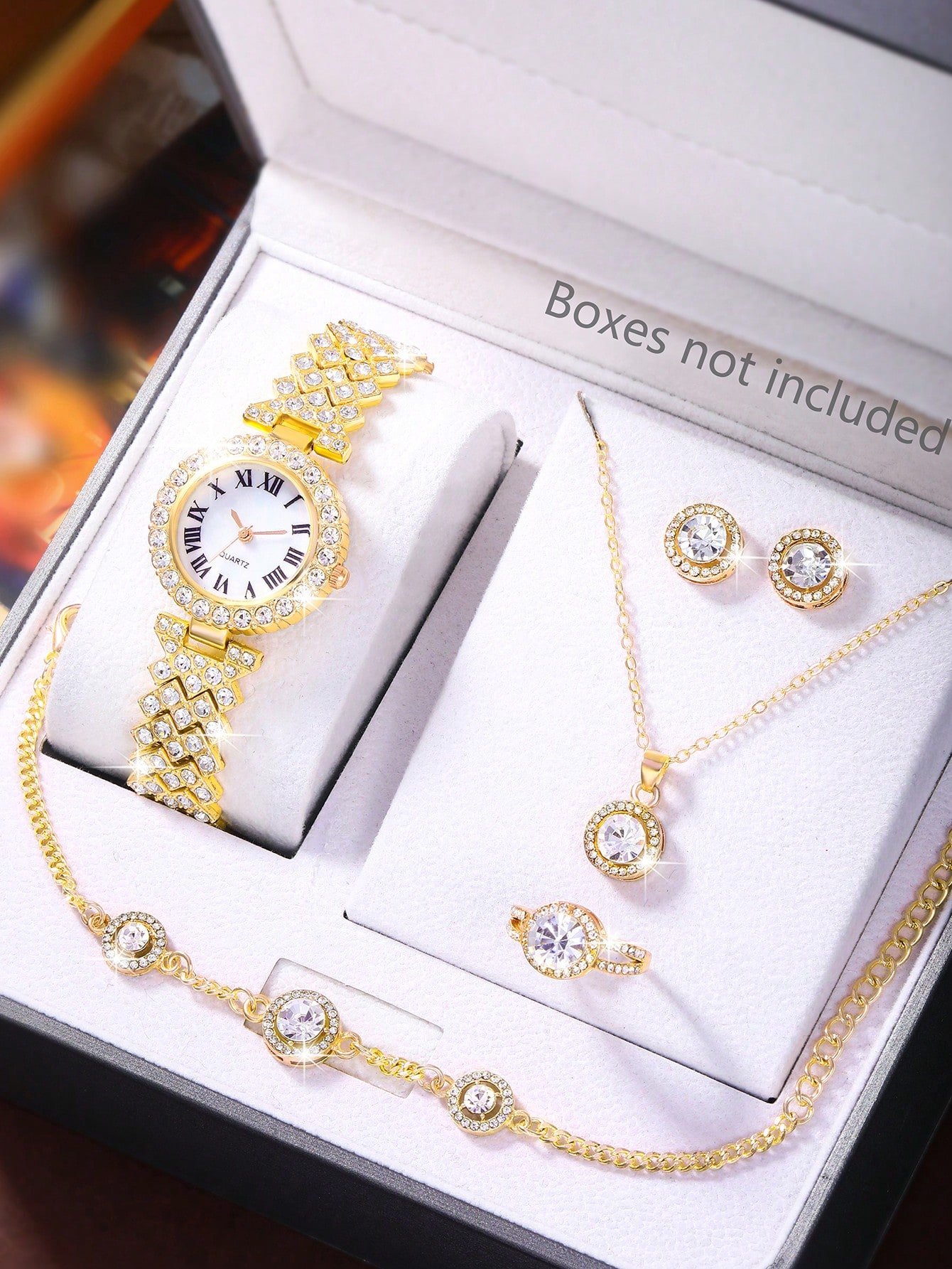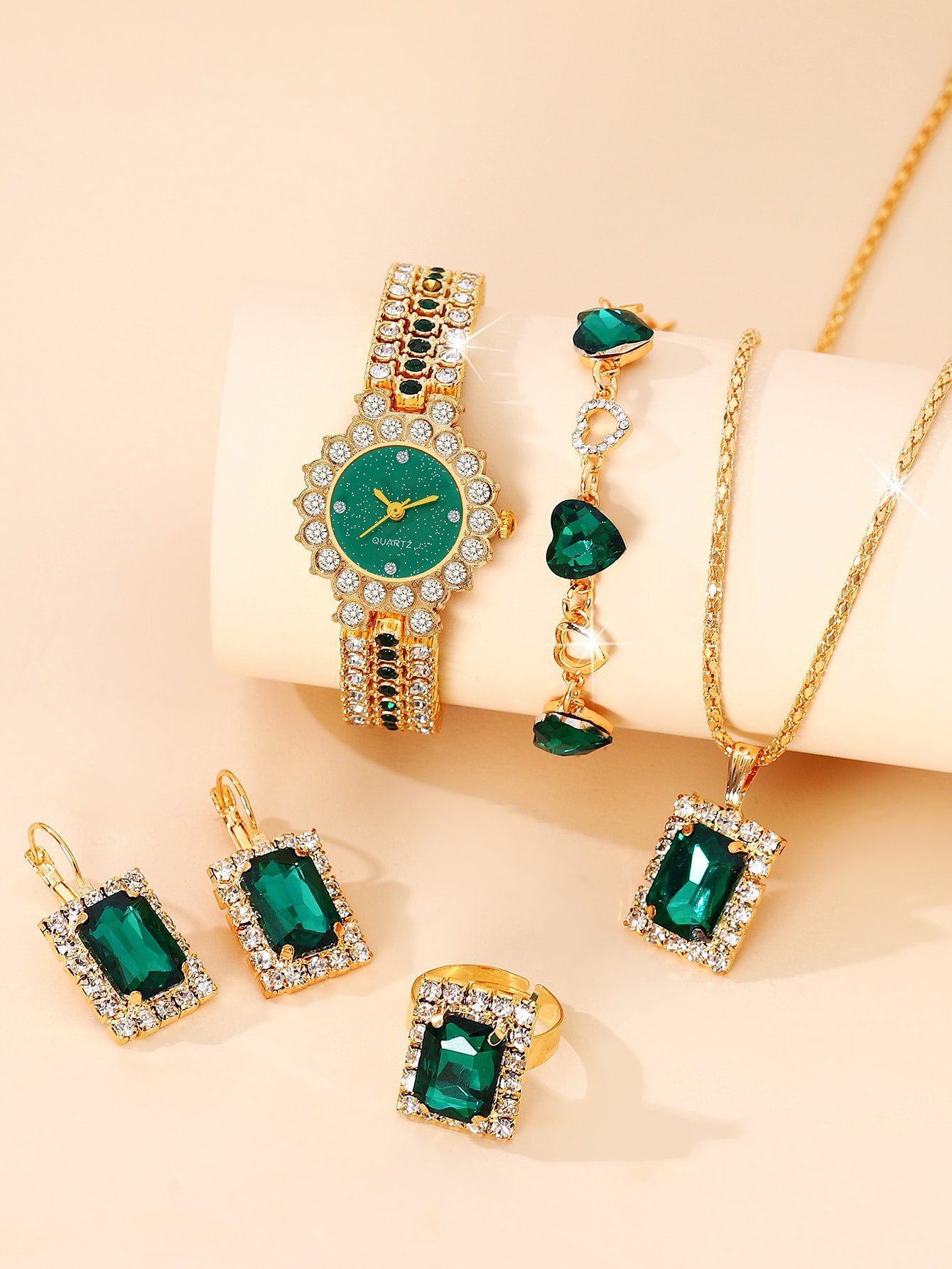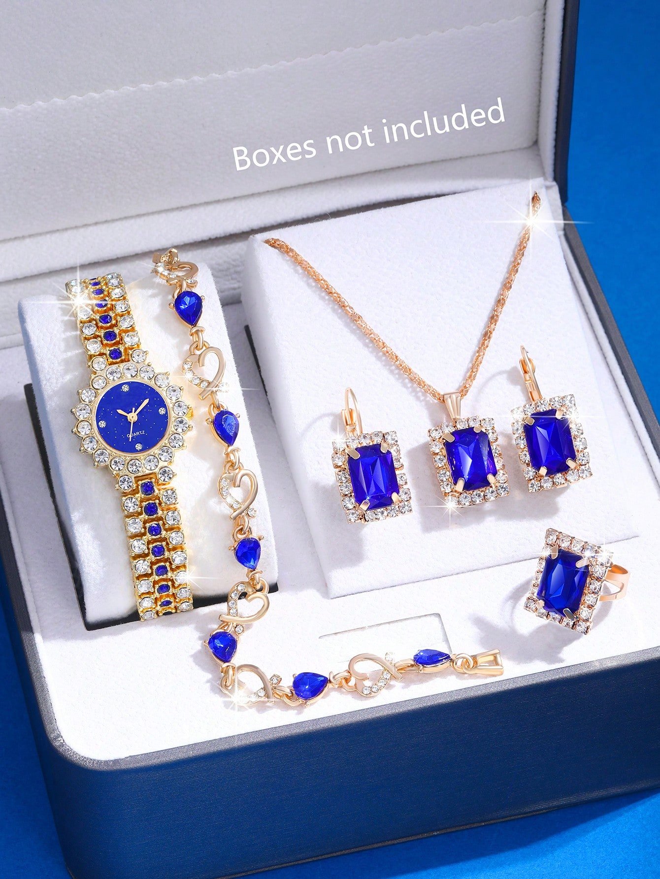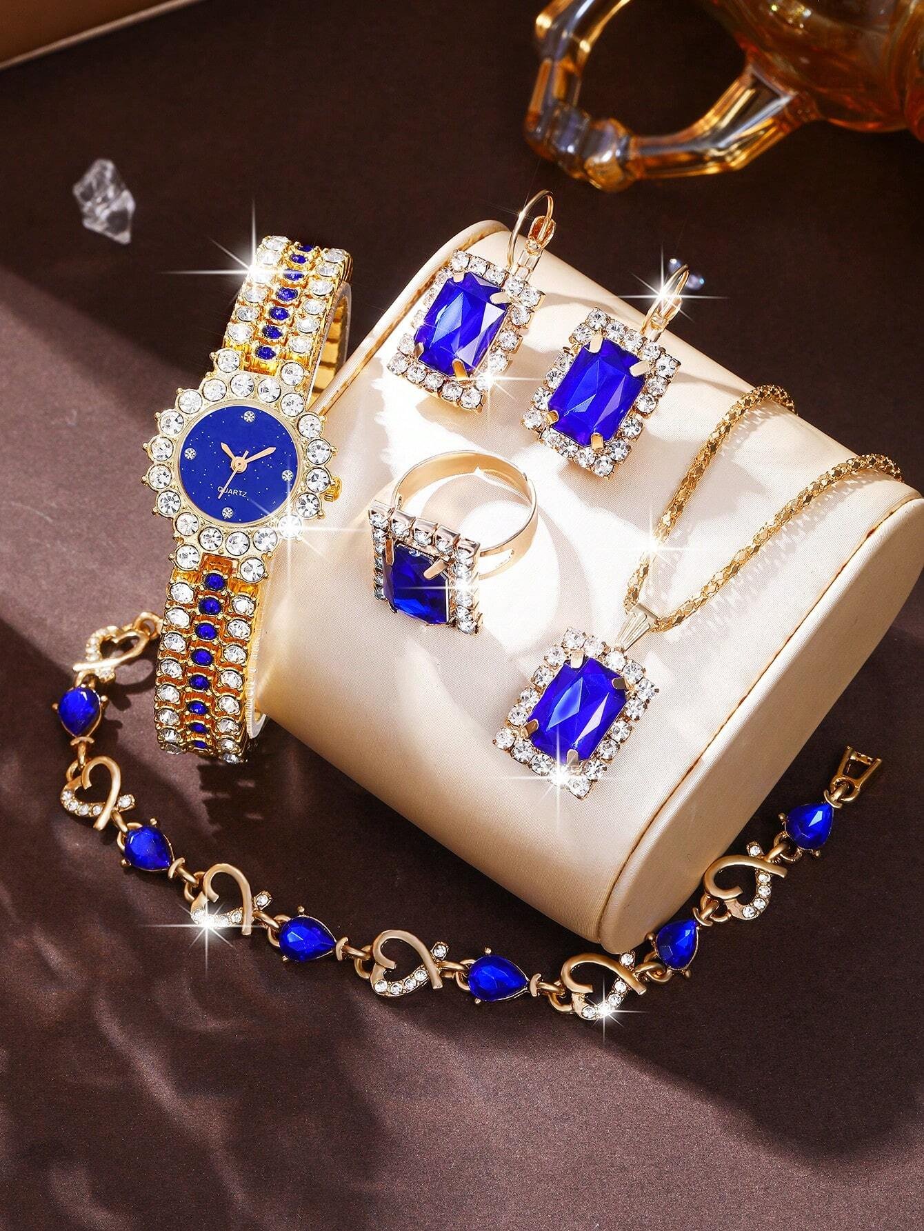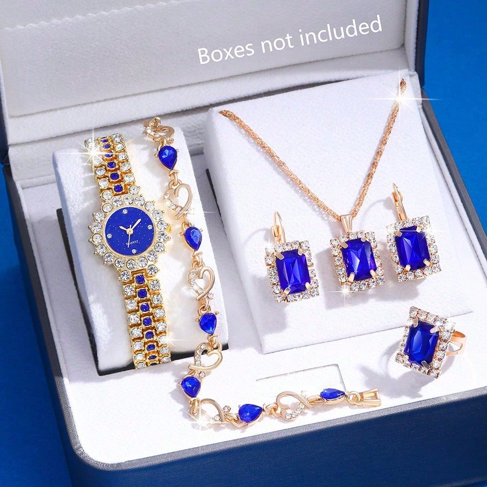 1 set de mode femme montre en quartz bleu avec collier, boucles d’oreilles, bracelet, ensemble d’accessoires bague, convient pour le port quotidien, cadeau d'anniversaire, fête, rassemblement de vacances, cadeau idéal pour vous-même ou vos amis. Aucune bo