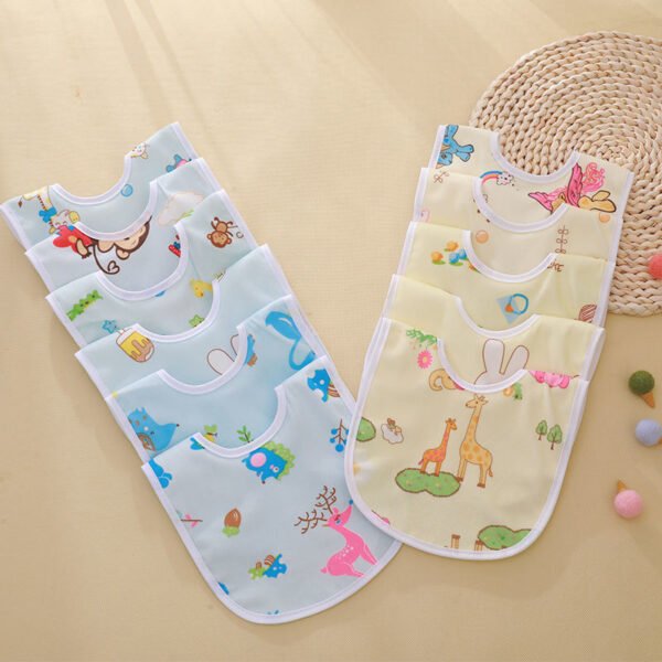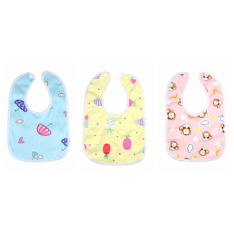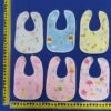 bavoirs très jolis et plastifiés sur l’envers donc très pratiques et boutons pressions assez solides.
