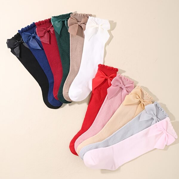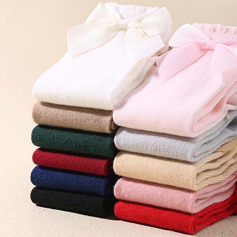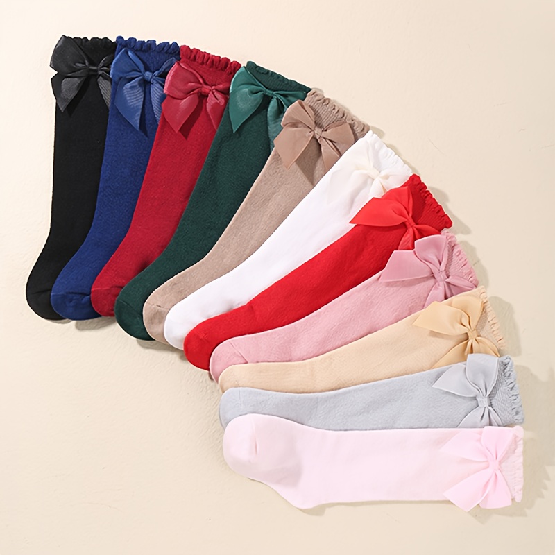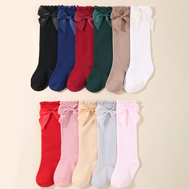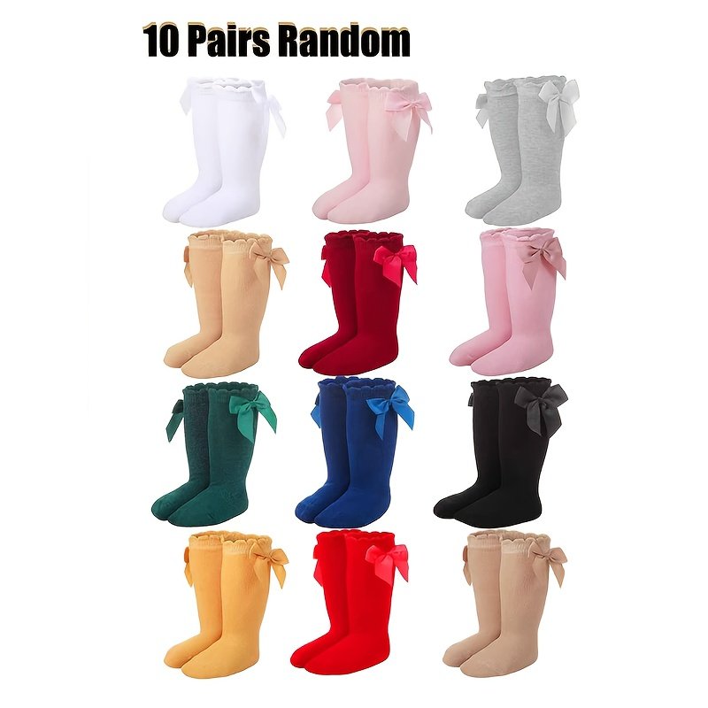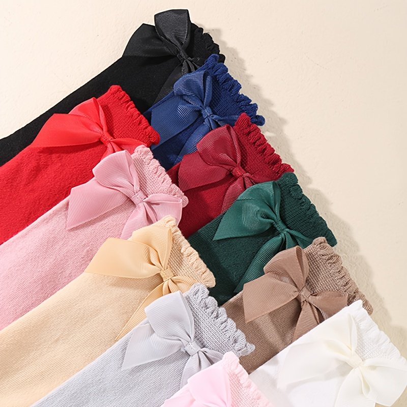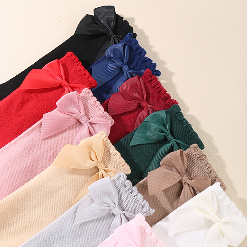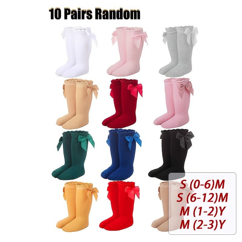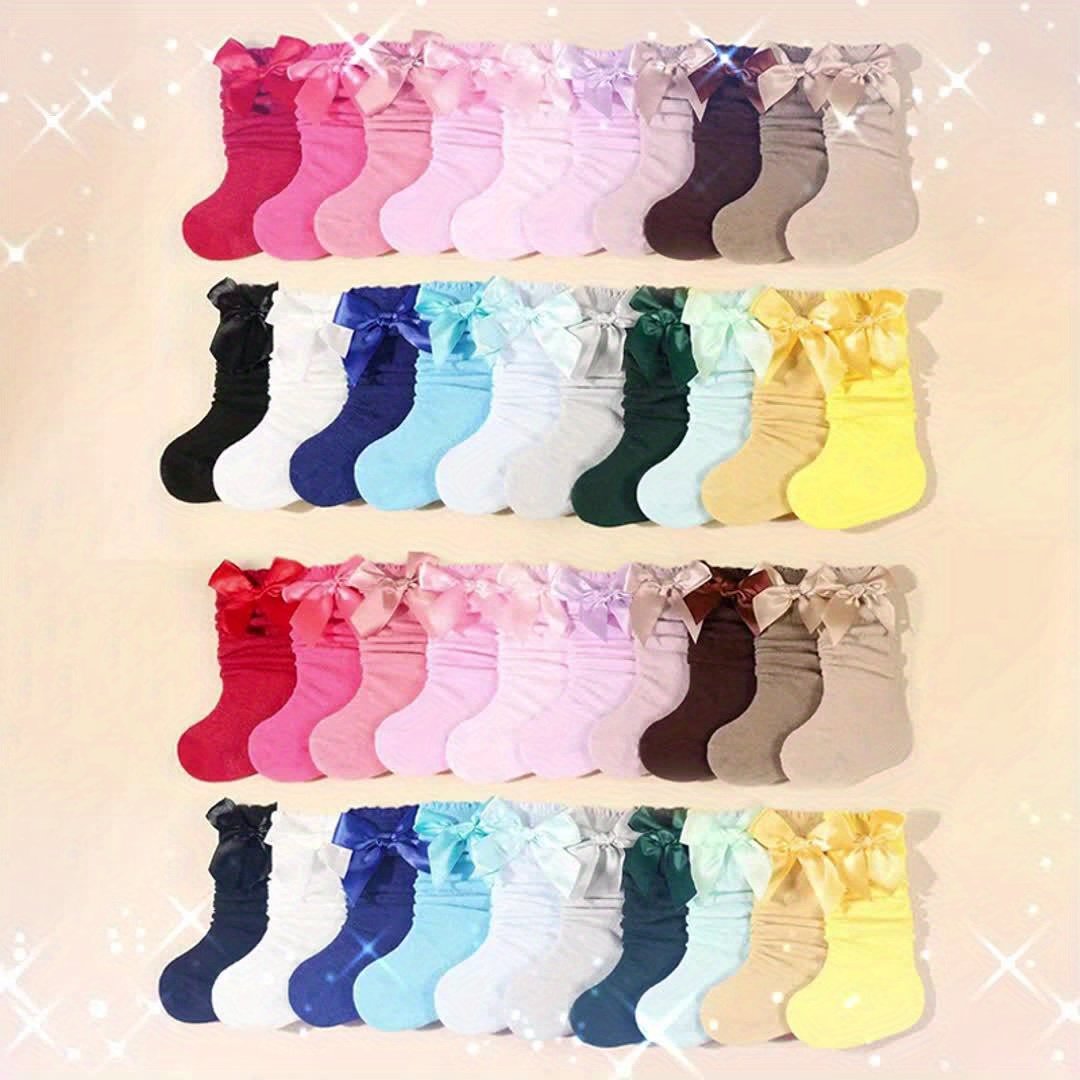 10 Paires de Chaussettes de Genou pour Bébé de Couleurs Aléatoires avec Décorations de Nœuds, Confortables et Respirantes pour Toutes les Saisons, Adaptées aux Filles de 0 à 3 Ans