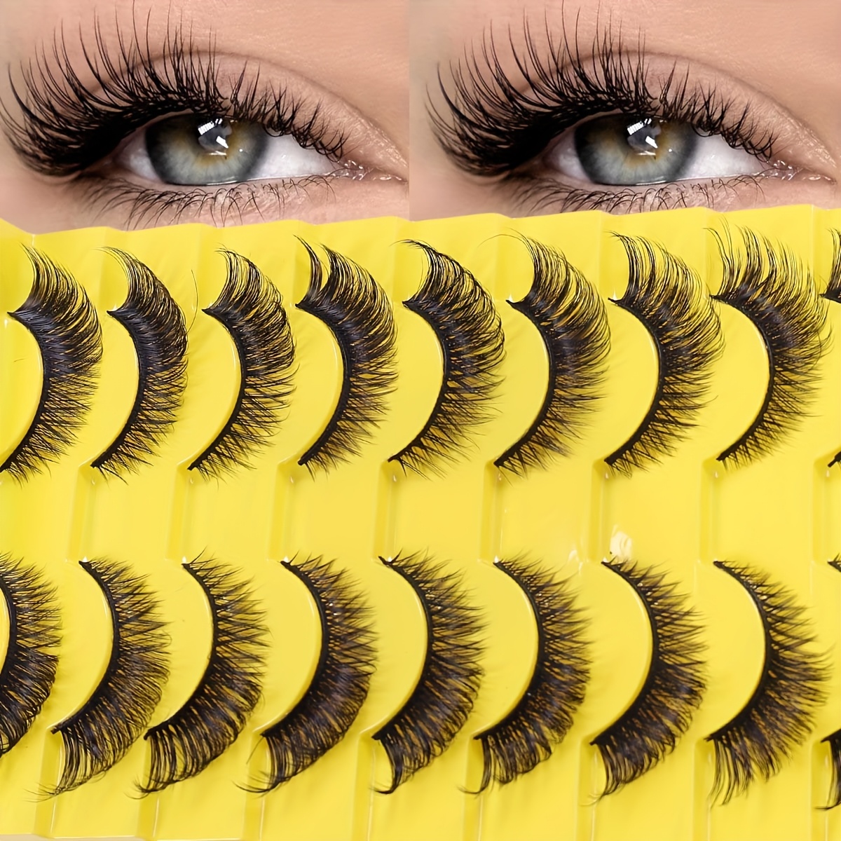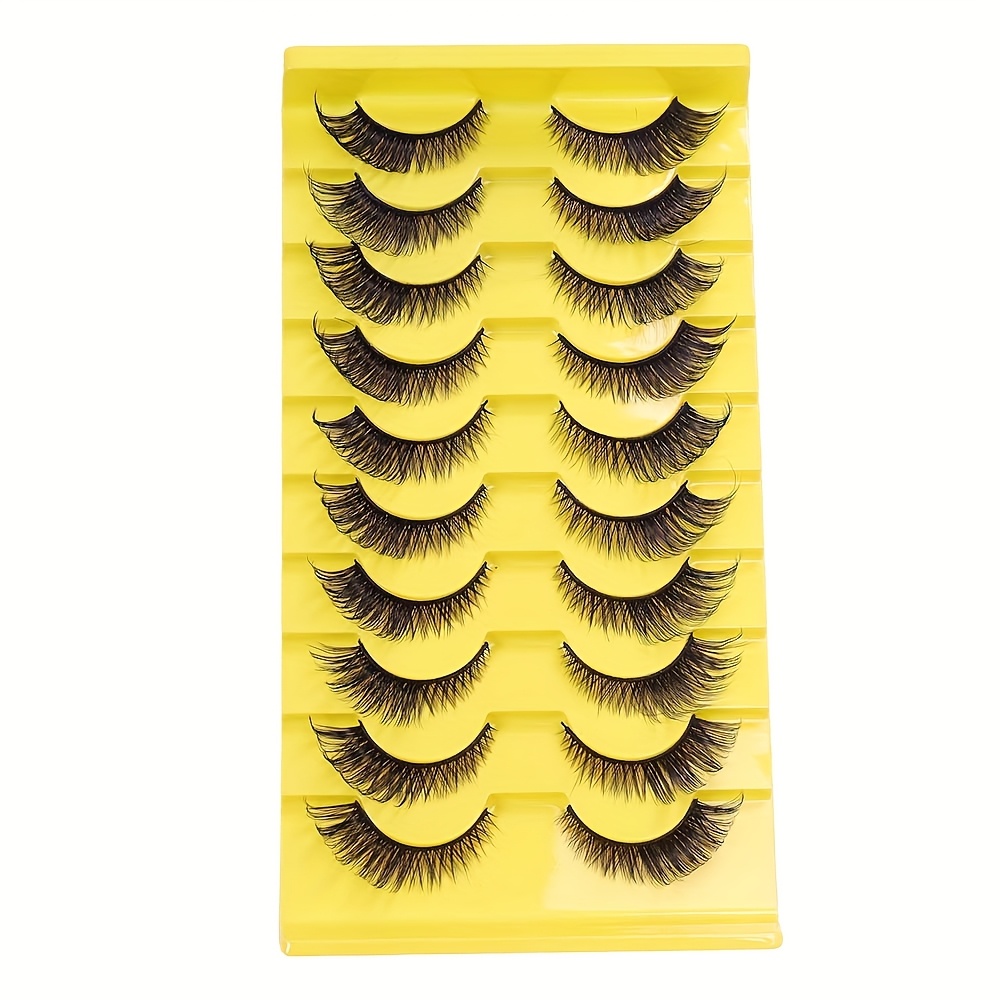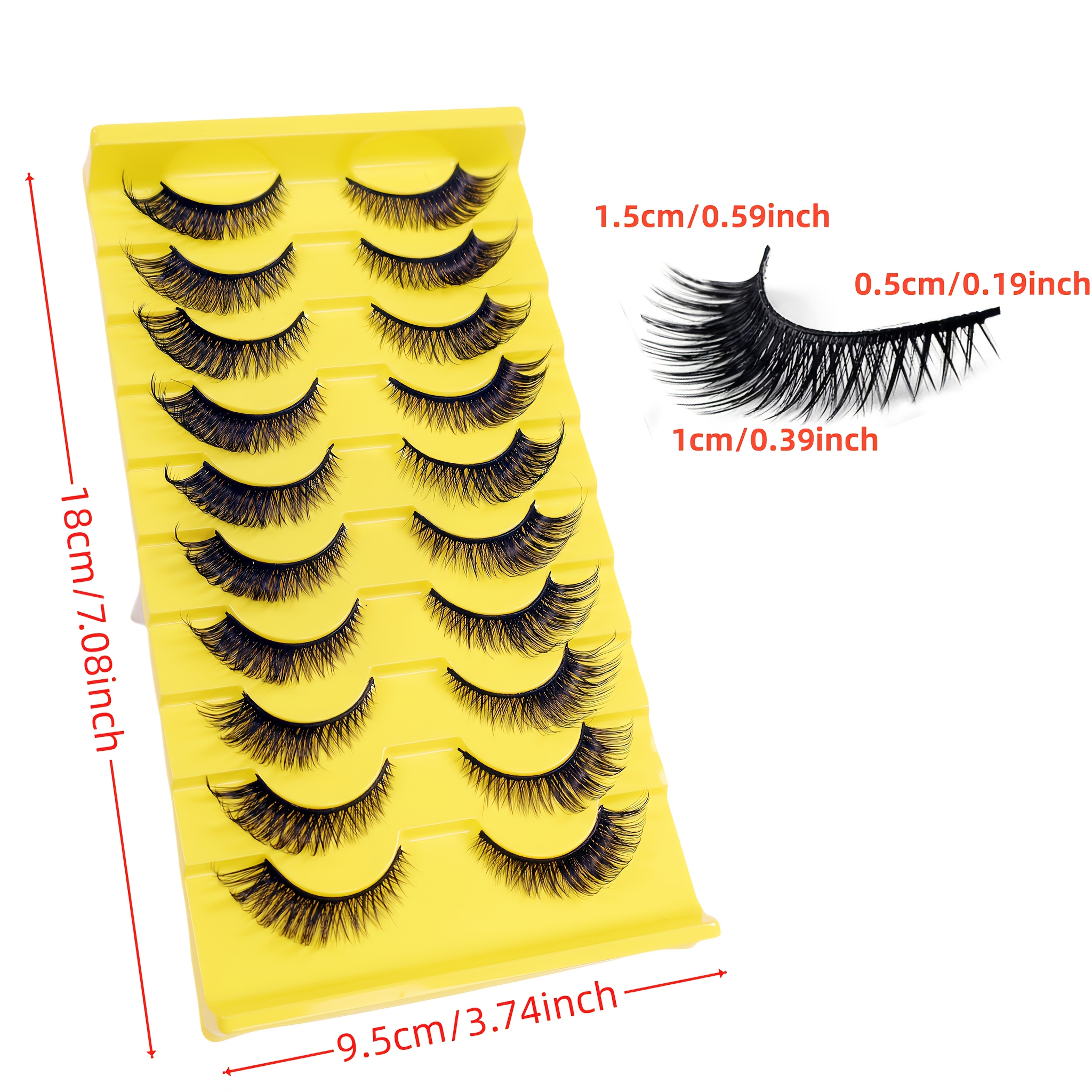 10 Paires de Faux Cils Inclinés Série Fox, Bande Complète Style Européen et Américain