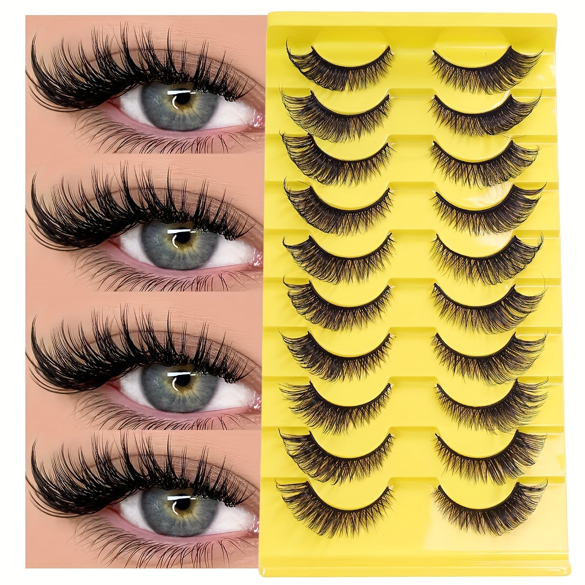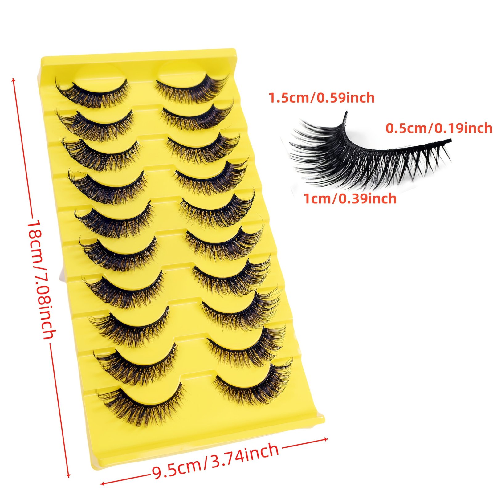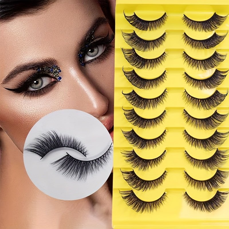 10 Paires de Faux Cils Inclinés Série Fox, Bande Complète Style Européen et Américain