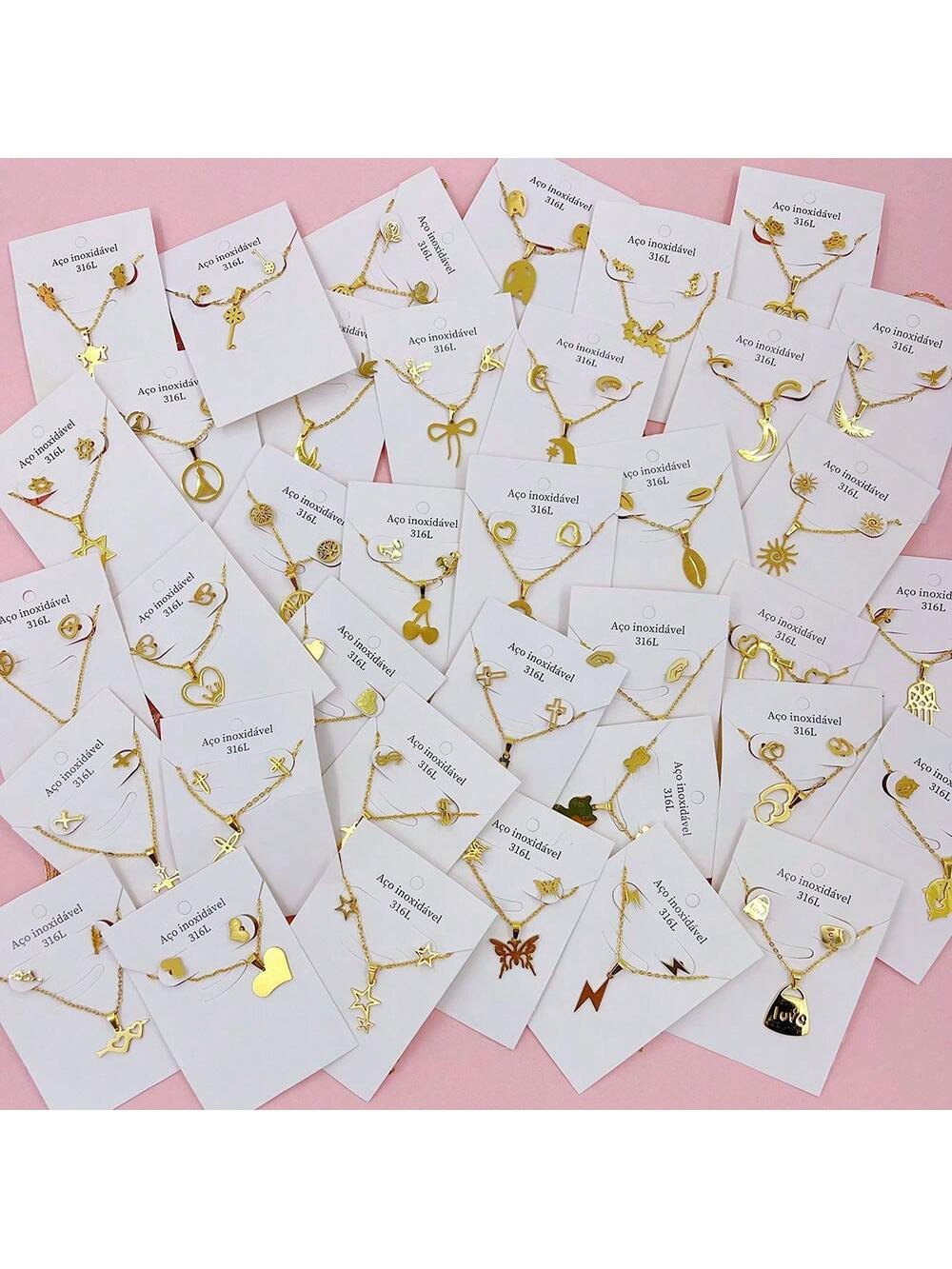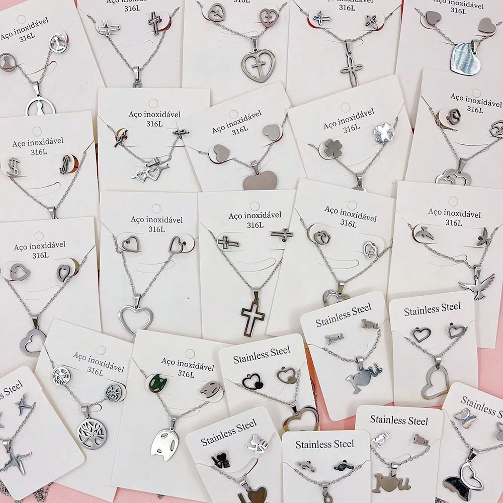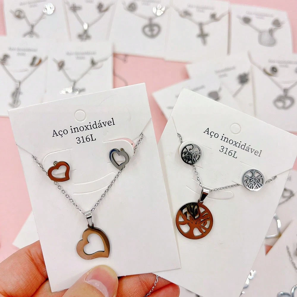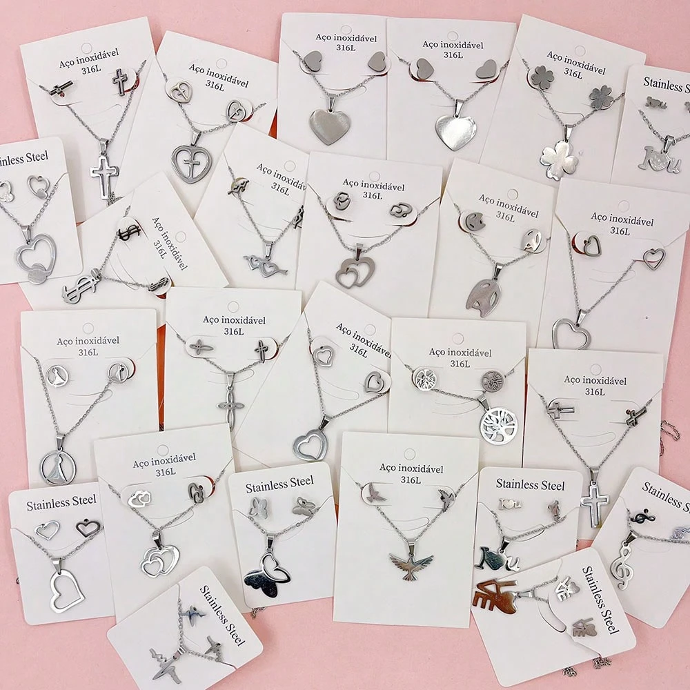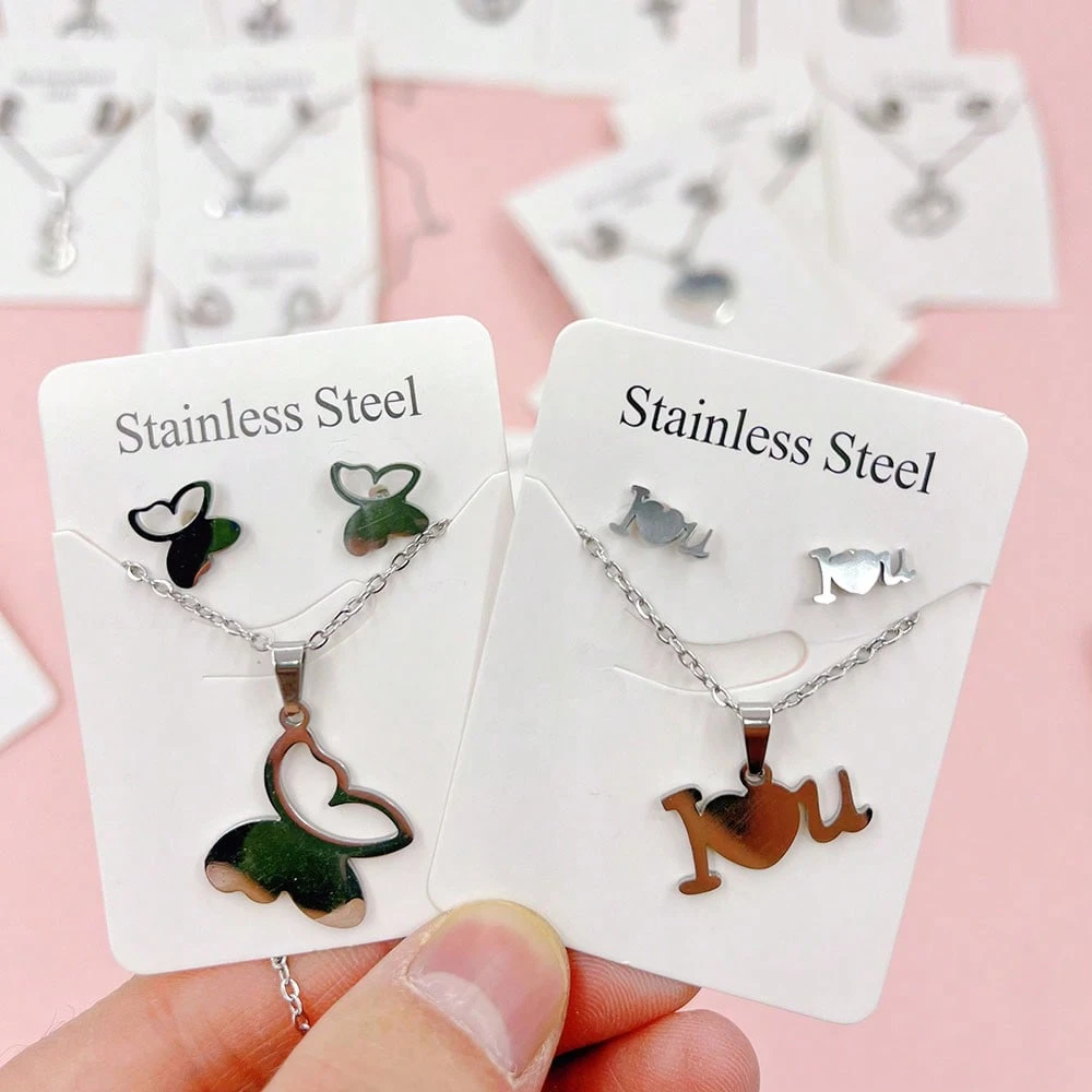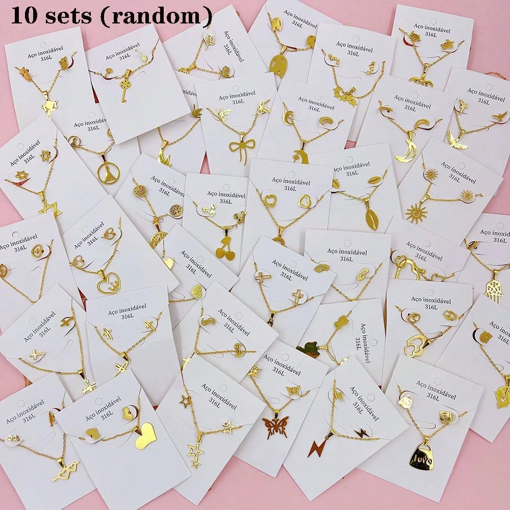 10 pièces/set Boucles d’oreilles et collier en acier inoxydable minimalistes pour femmes, styles mélangés élégants et mignons de cœur et de cerise. Ensemble de bijoux multi-pièces pour fête, mariage, port quotidien, accessoires de mode. Livraison aléatoir