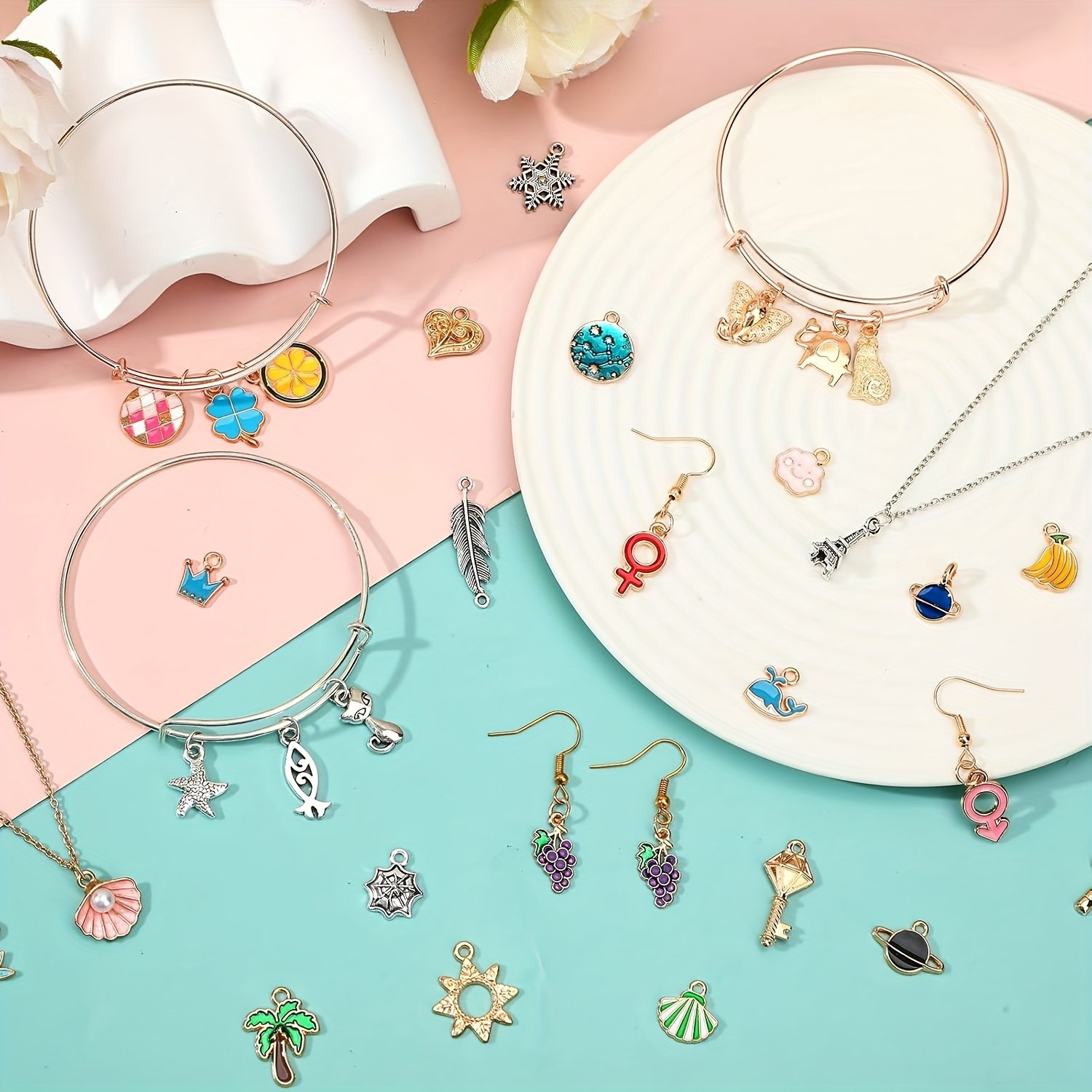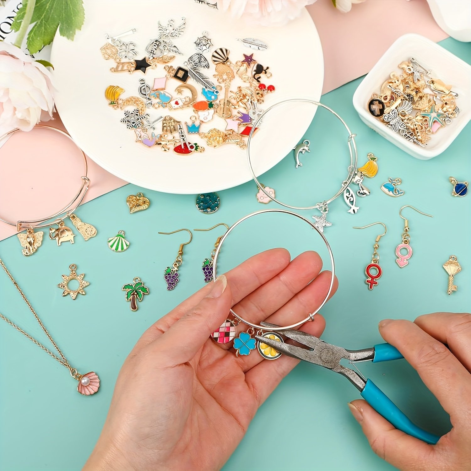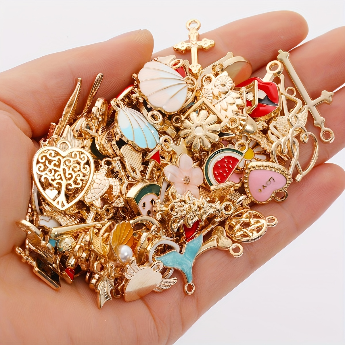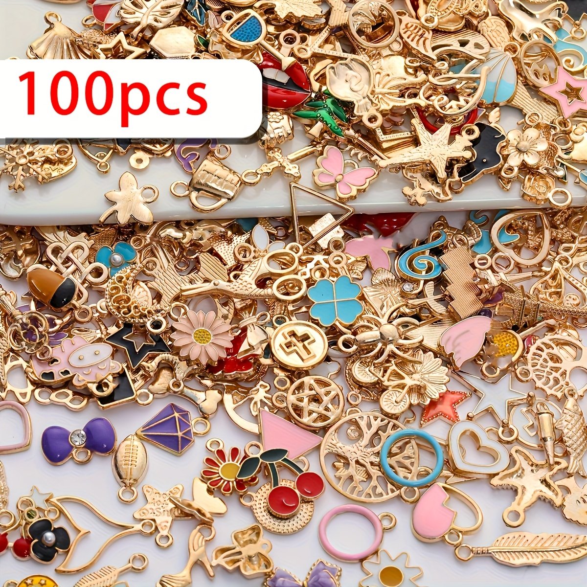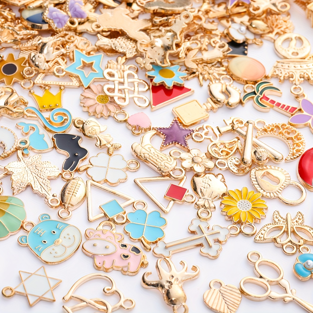 100/200 pièces Fournitures pour la Création de Bijoux, Pendentifs en Émail Assortis pour Bracelets, Charmes Métalliques Mélangés en Gros pour Colliers et Boucles d’Oreilles