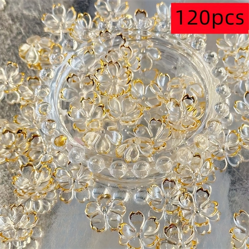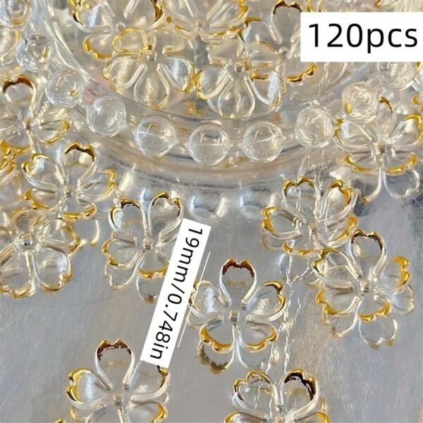 120 pièces de perles transparentes à cinq pétales avec bordure dorée