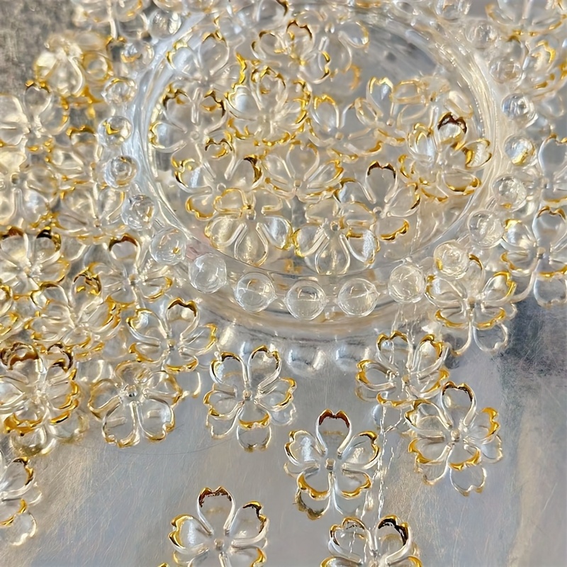 120 pièces QYWCTZ Perles Transparentes Dorées Fleur de Cerisier avec Capsules