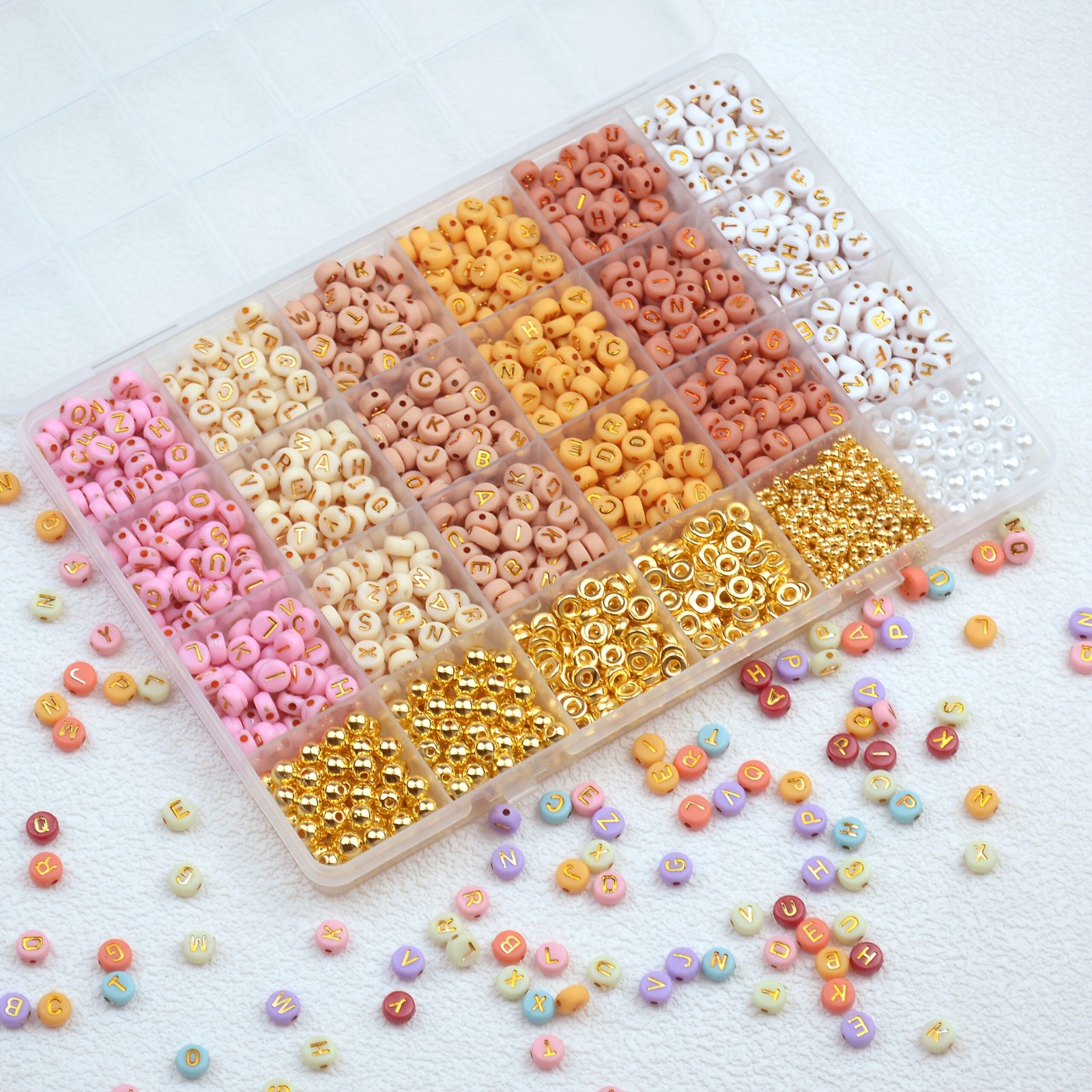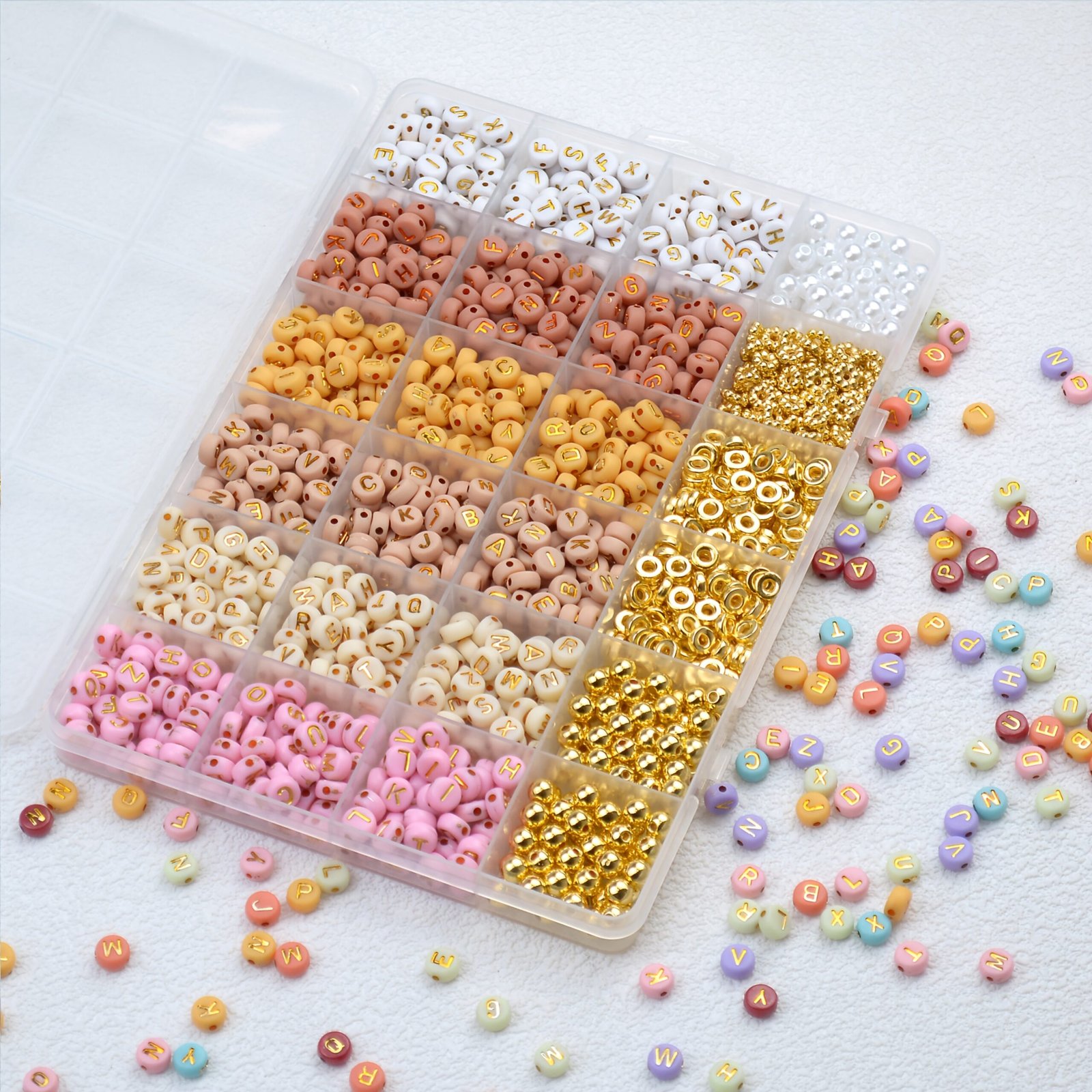 1200 pièces de kit de perles de lettres de style bohème, comprenant 24 différents designs