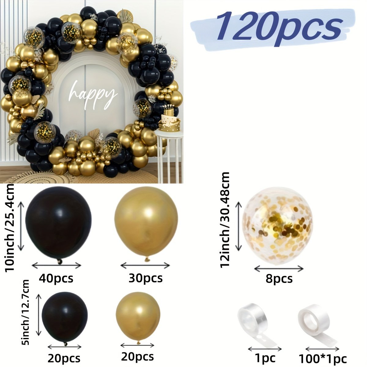 120pièces de Set de Guirlande de Ballons Noirs et Dorés, Ballons en Latex Colorés Confetti, Ensemble de Décoration de Ballons Adapté aux Anniversaires, Nouvel An, Mariages, Anniversaires, Mariages, Fêtes d’Été, Danses de Révélation de Sexe, Fêtes de Récupération, Décoration Intérieure et Extérieure
