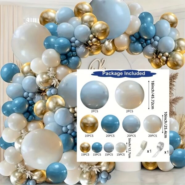136 pièces Ensemble de guirlandes de ballons bleus, bleu brumeux et oranges bleus