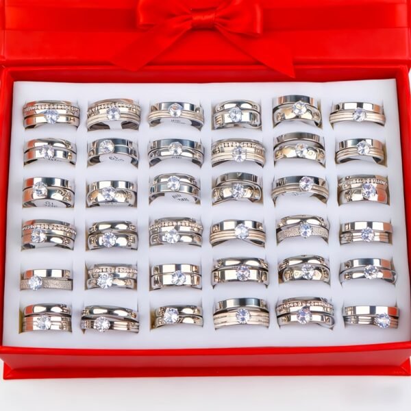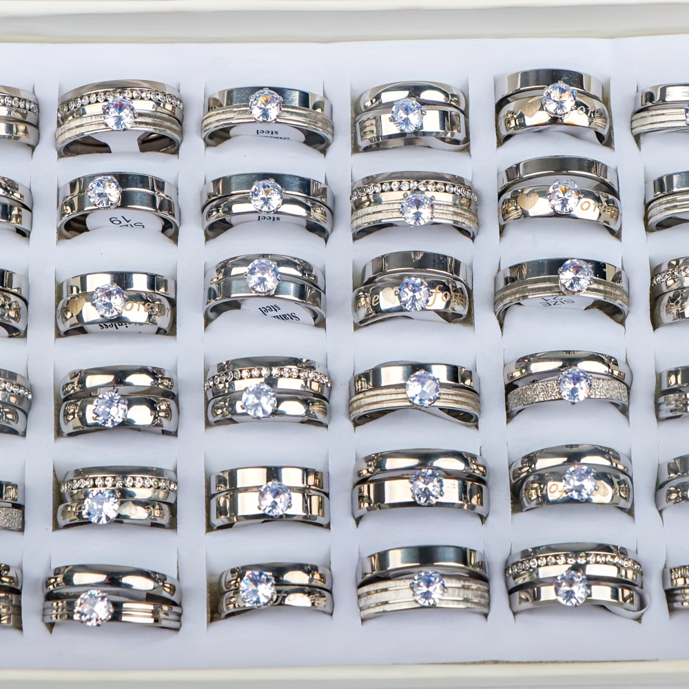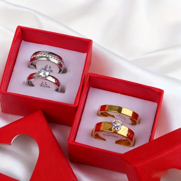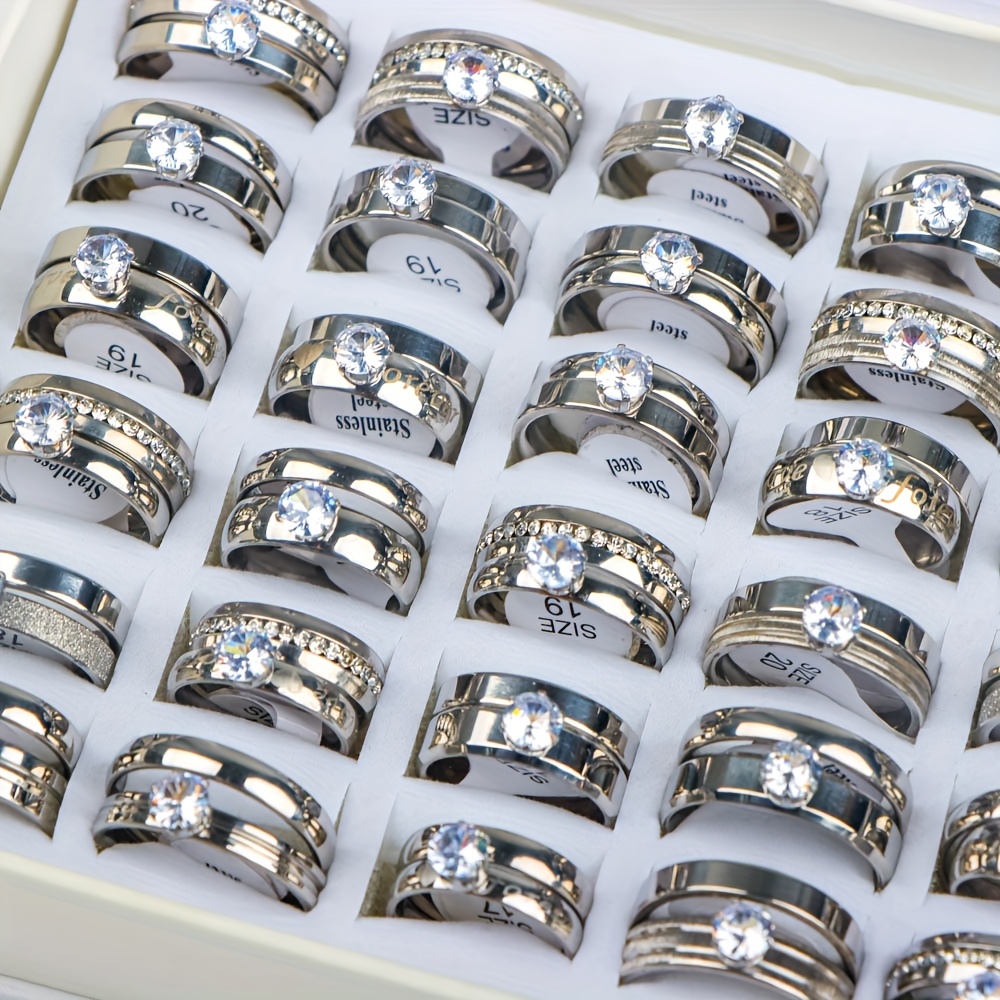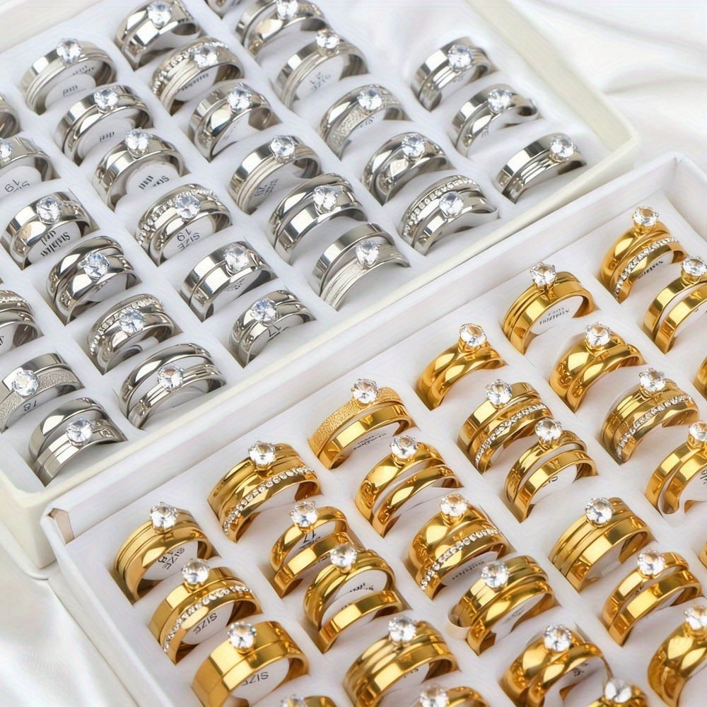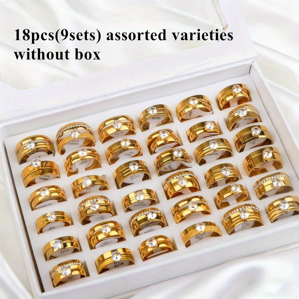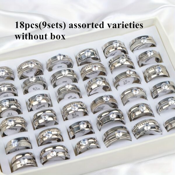 18 bagues de mariage élégantes en acier inoxydable avec strass d’eau (9 ensembles), cadeaux pour fêtes pour hommes et femmes, bagues de mariage et d’anniversaire, sans boîte