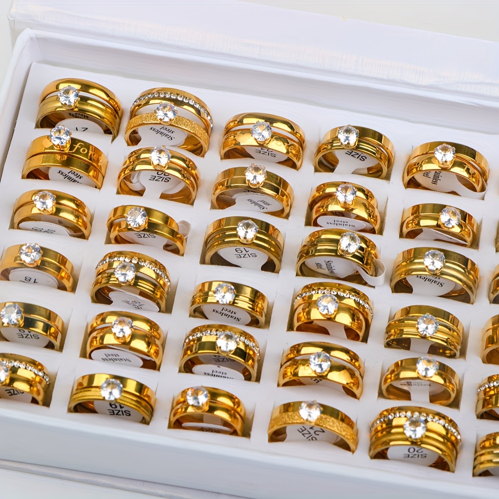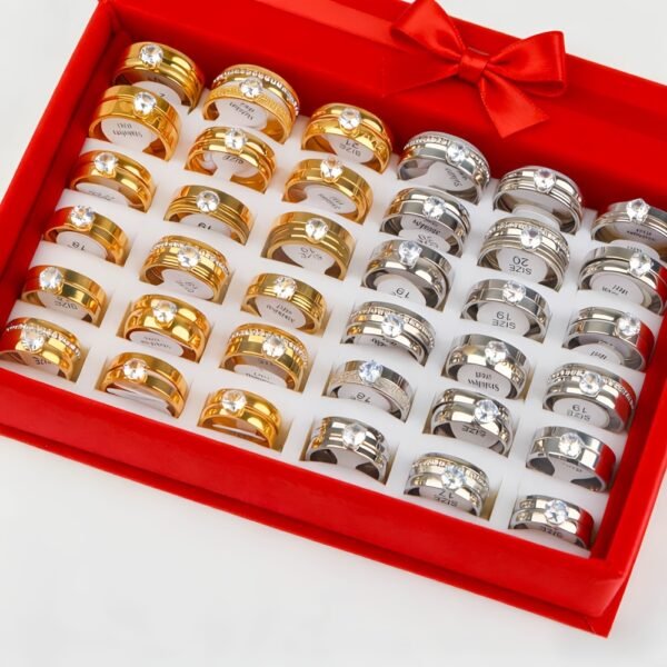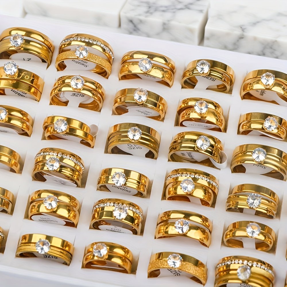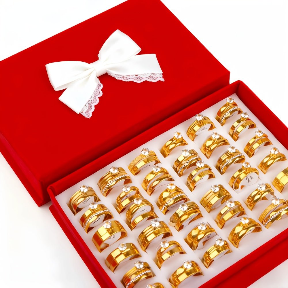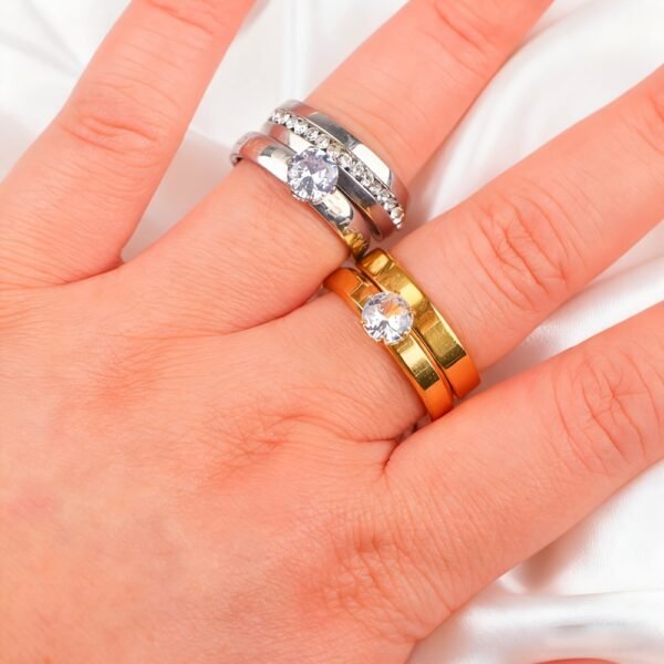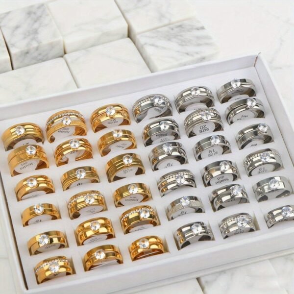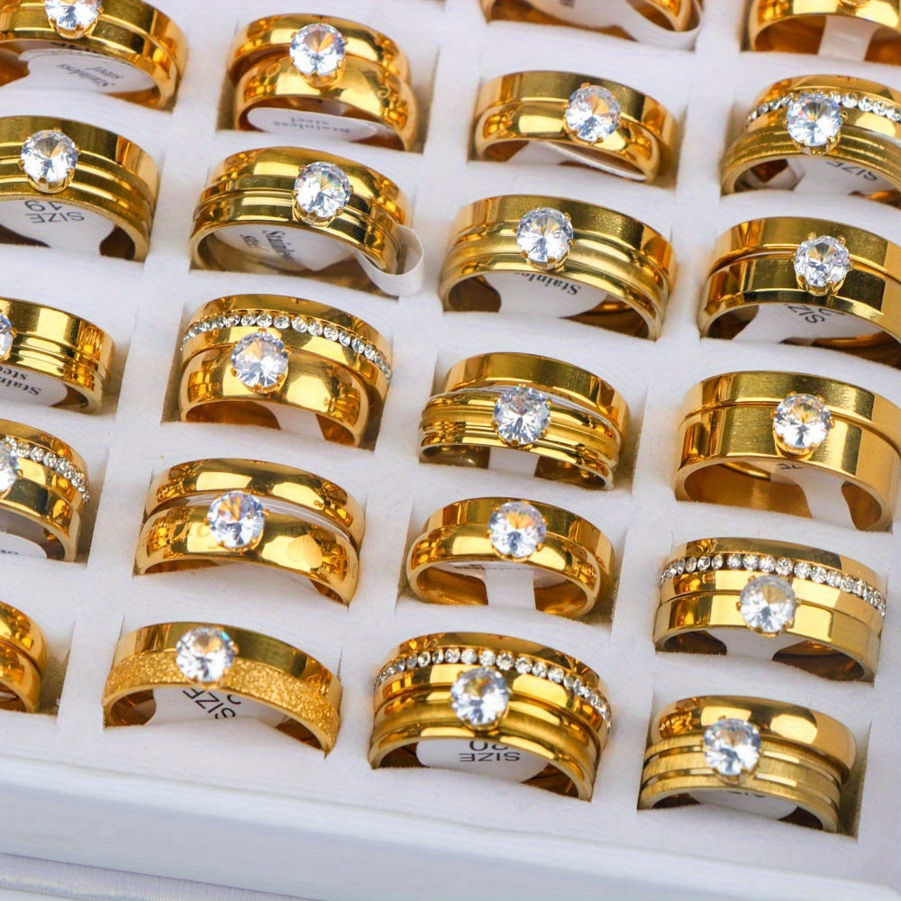 18 bagues de mariage élégantes en acier inoxydable avec strass d’eau (9 ensembles), cadeaux pour fêtes pour hommes et femmes, bagues de mariage et d’anniversaire, sans boîte