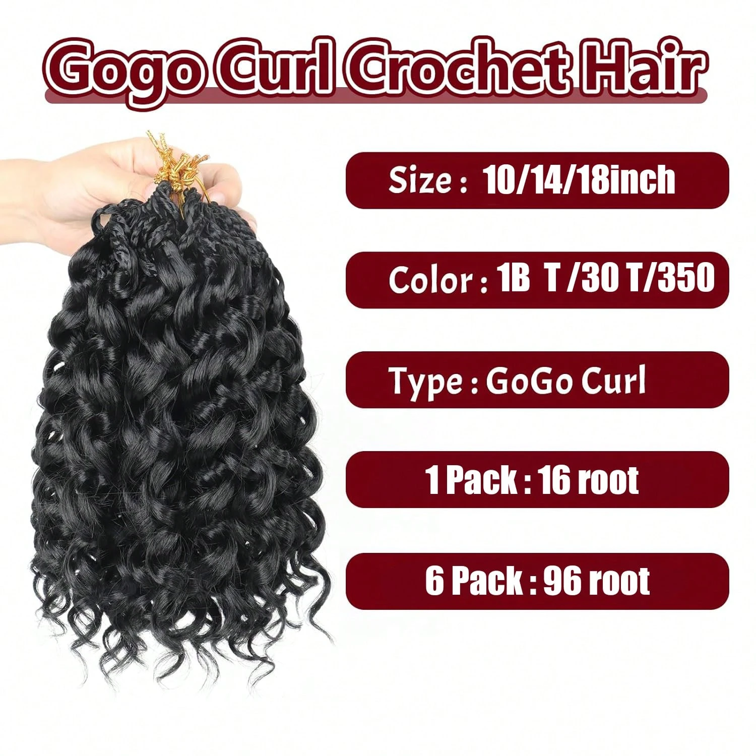 18 pouces (1 paquet) Cheveux crochets pré-torsadés Gogo Curl courts bouclés pour femmes, cheveux crochets pré-boucles vague océan, cheveux crochets vague d'eau, cheveux crochets vague profonde