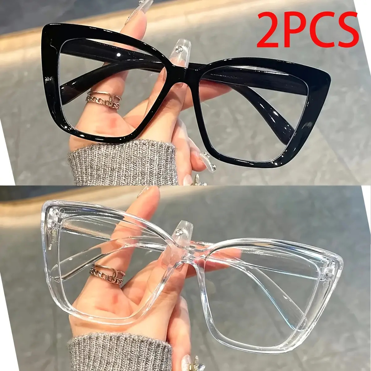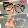 2 Paires de Lunettes Plates Décoratives à Monture Chat pour Femme,