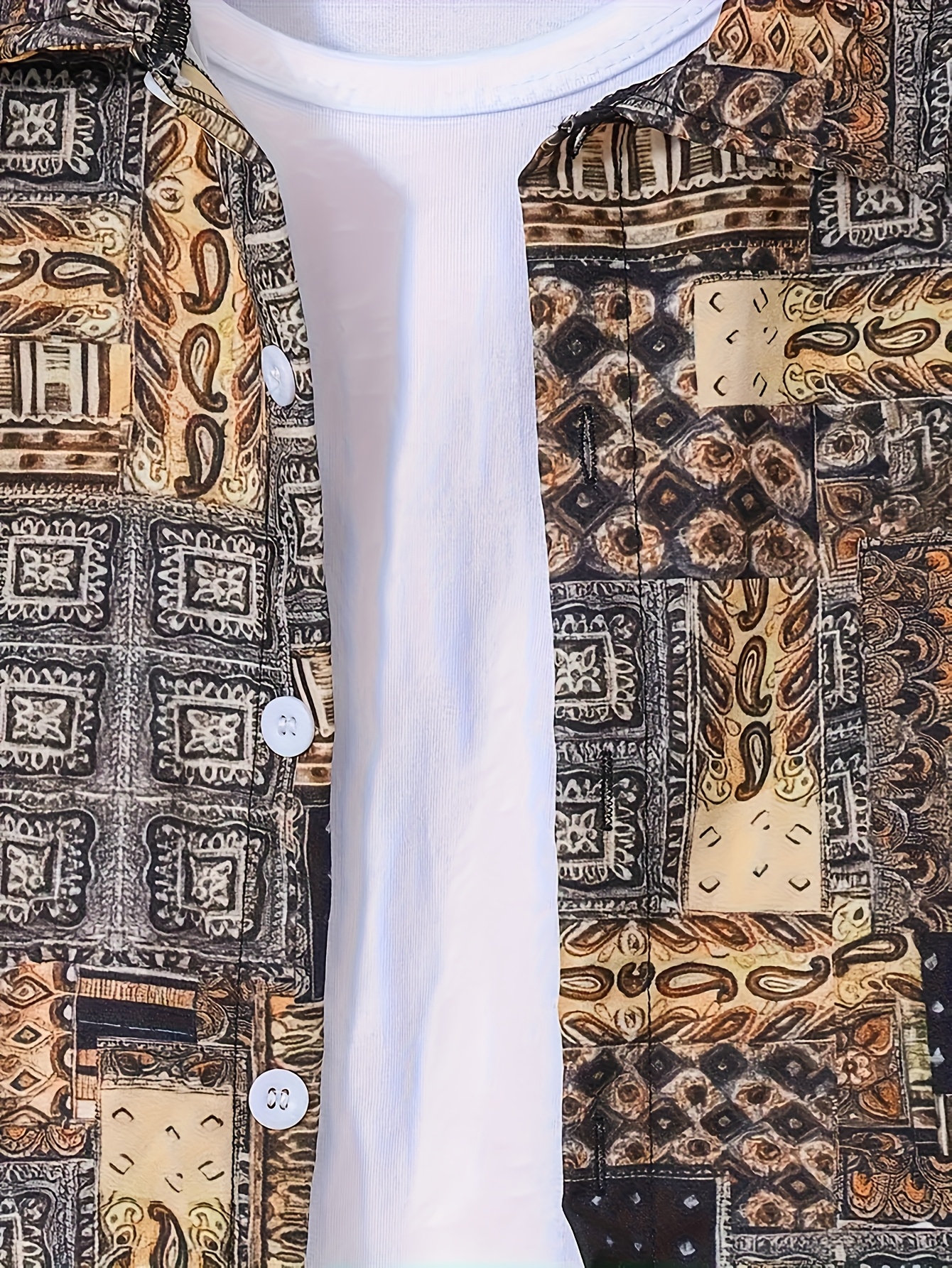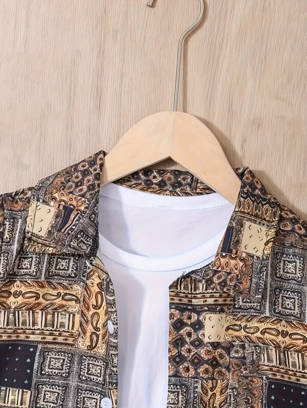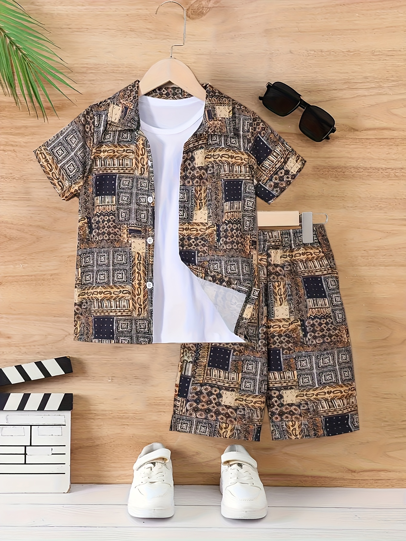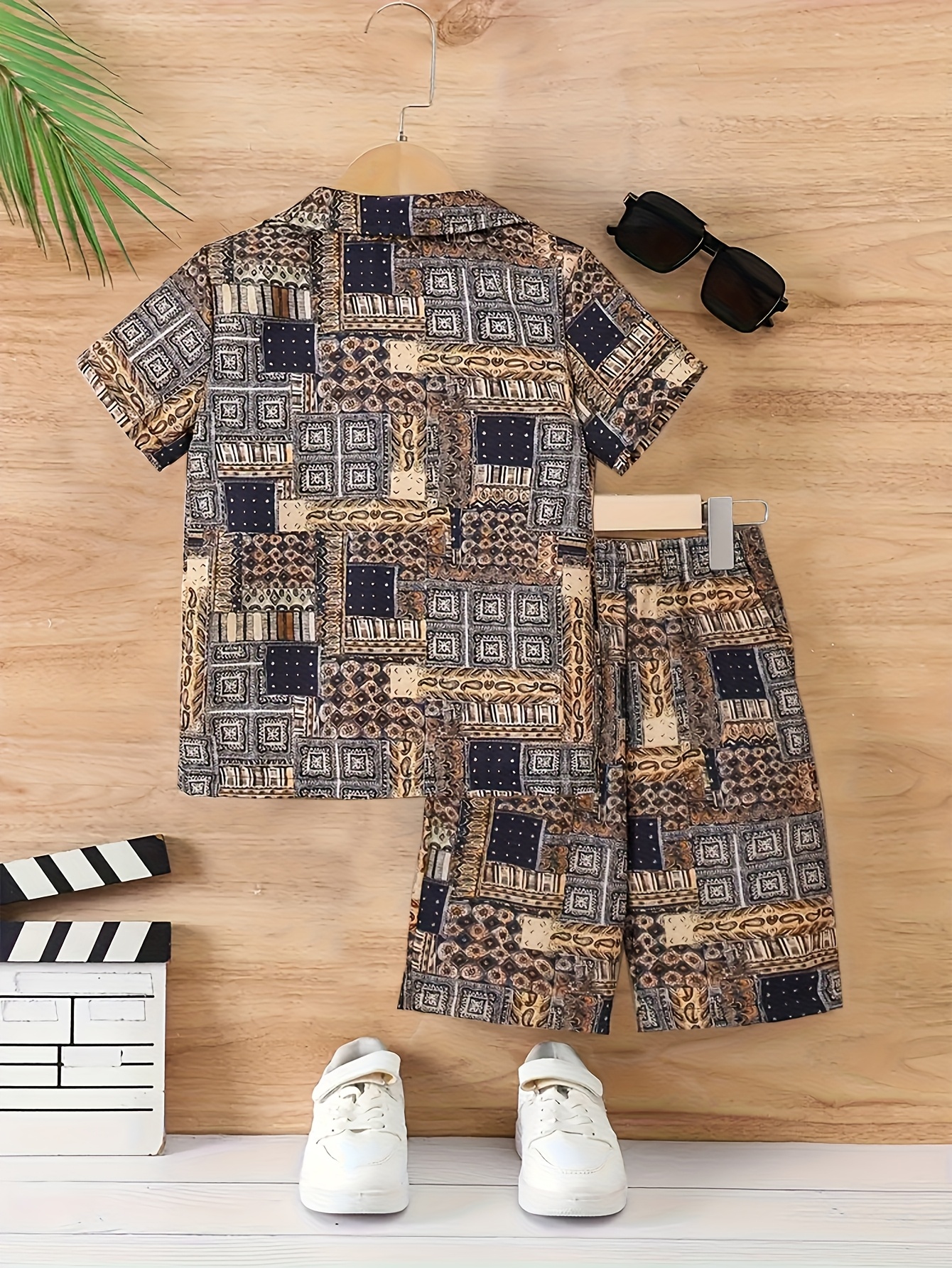 2 pièces Ensemble Chemise à Col Simple et Shorts Imprimé pour Garçon