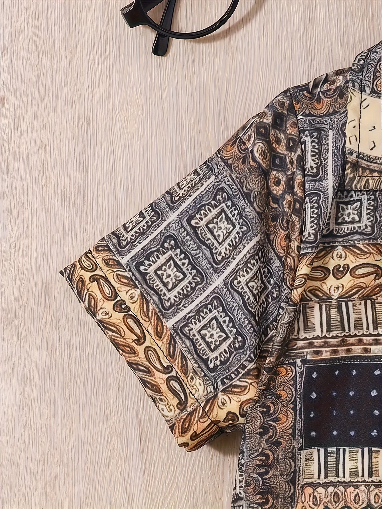 2 pièces Ensemble Chemise à Col Simple et Shorts Imprimé pour Garçon
