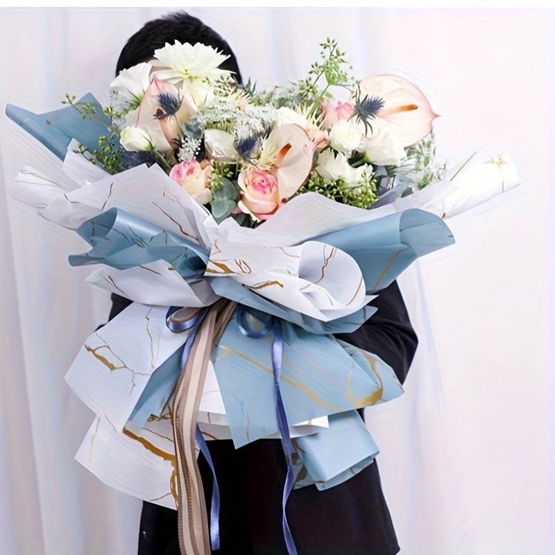 20 feuilles de papier coréen doré marbré, imperméable, bouquet de papier marbré, papier cadeau, langue anglaise, matériau plastique, avec motif pour les fournitures d’emballage cadeau, pour mariage, anniversaire, anniversaire, fête et occasions spéciales, fournitures d’emballage cadeau