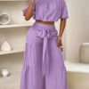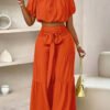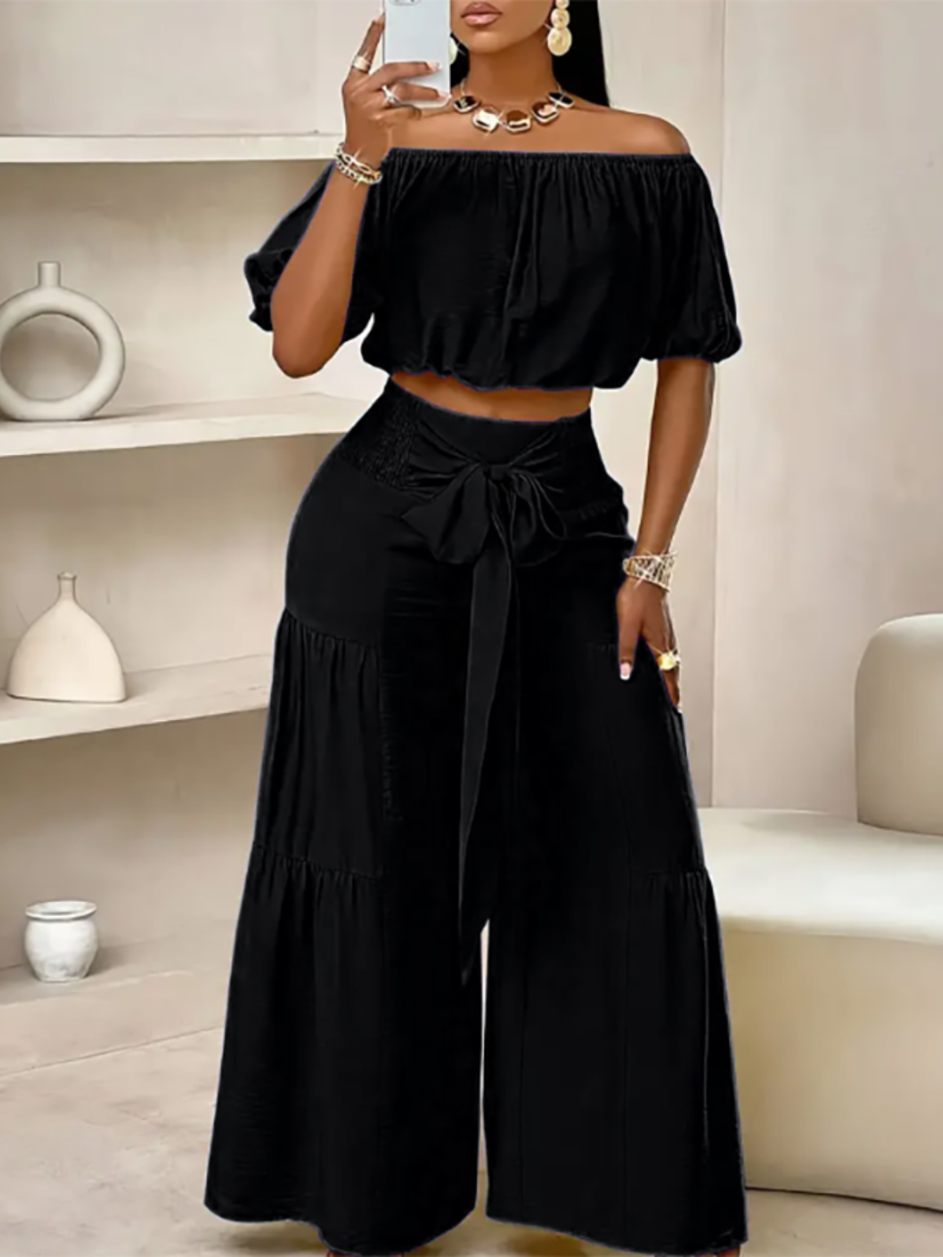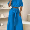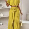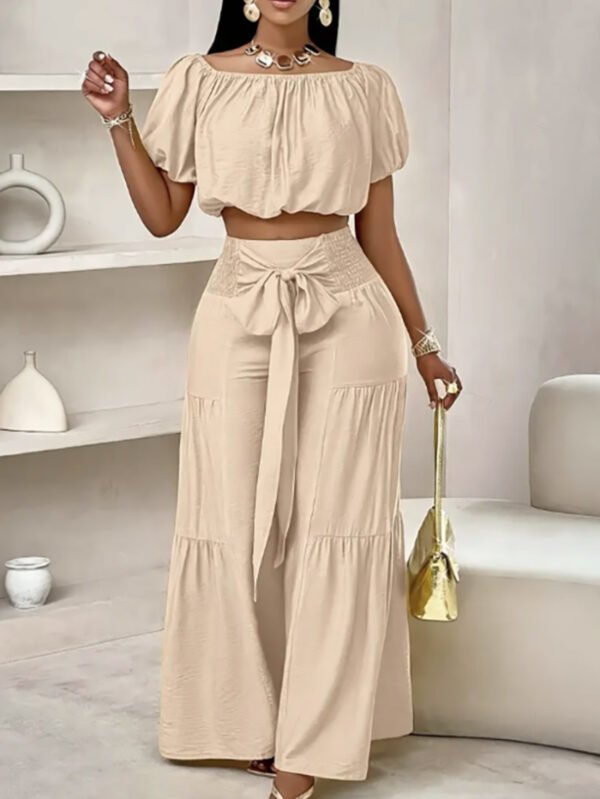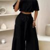 2025 Nouveau Ensemble 2 pièces Pantalon Large Taille à Ceinture Évasé