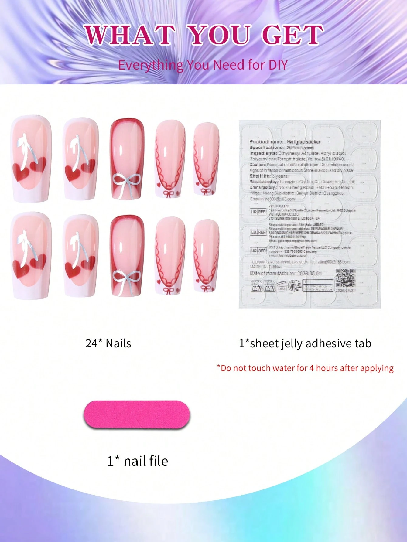 Soyez le premier à laisser votre avis sur “24 pièces Faux ongles carrés longs avec motif nœud et cerises, blancs, en acrylique. Comprend : 1 pièce de colle de gel et 1 pièce de lime à ongles. Rendez vos ongles brillants et beaux pour la Saint-Valentin. Ces ongles conviennent parfaitement pour les”