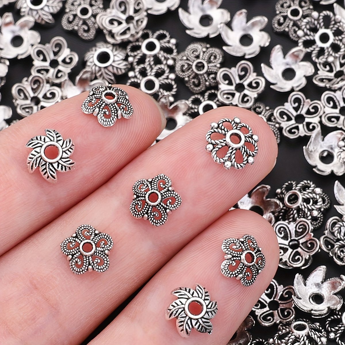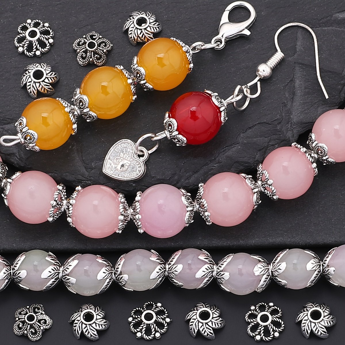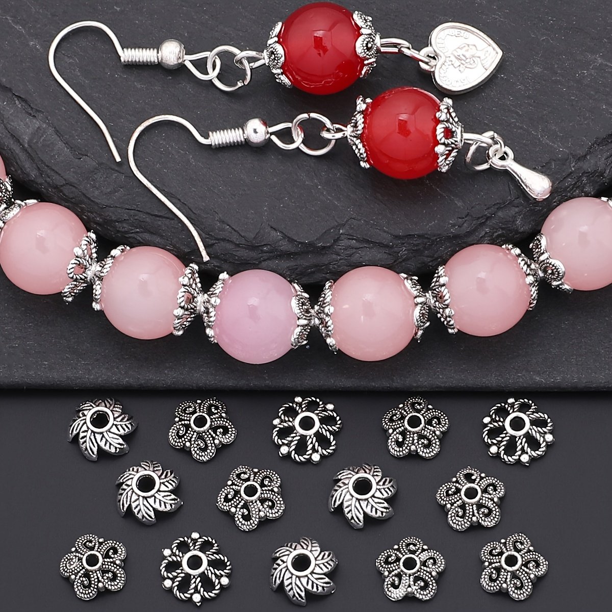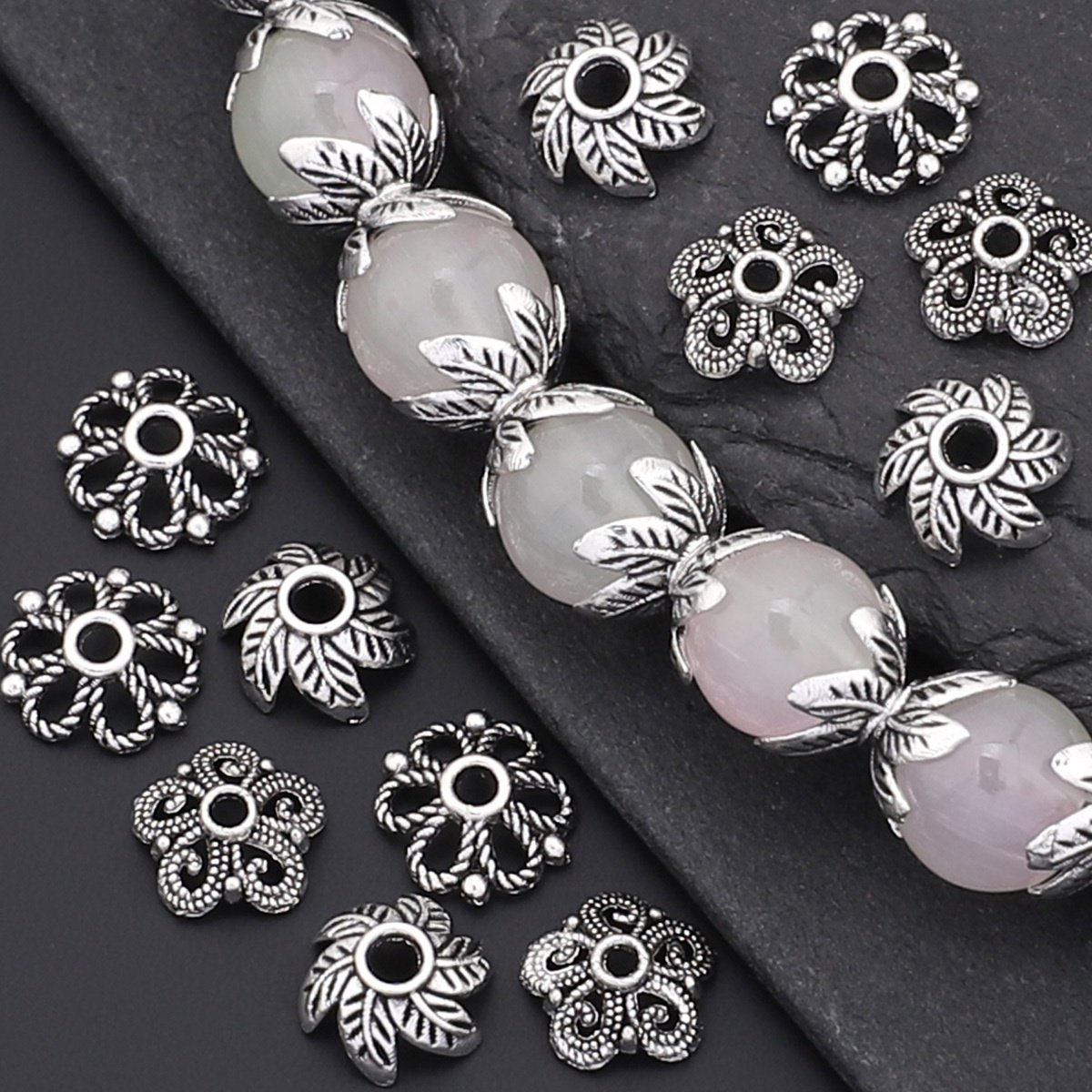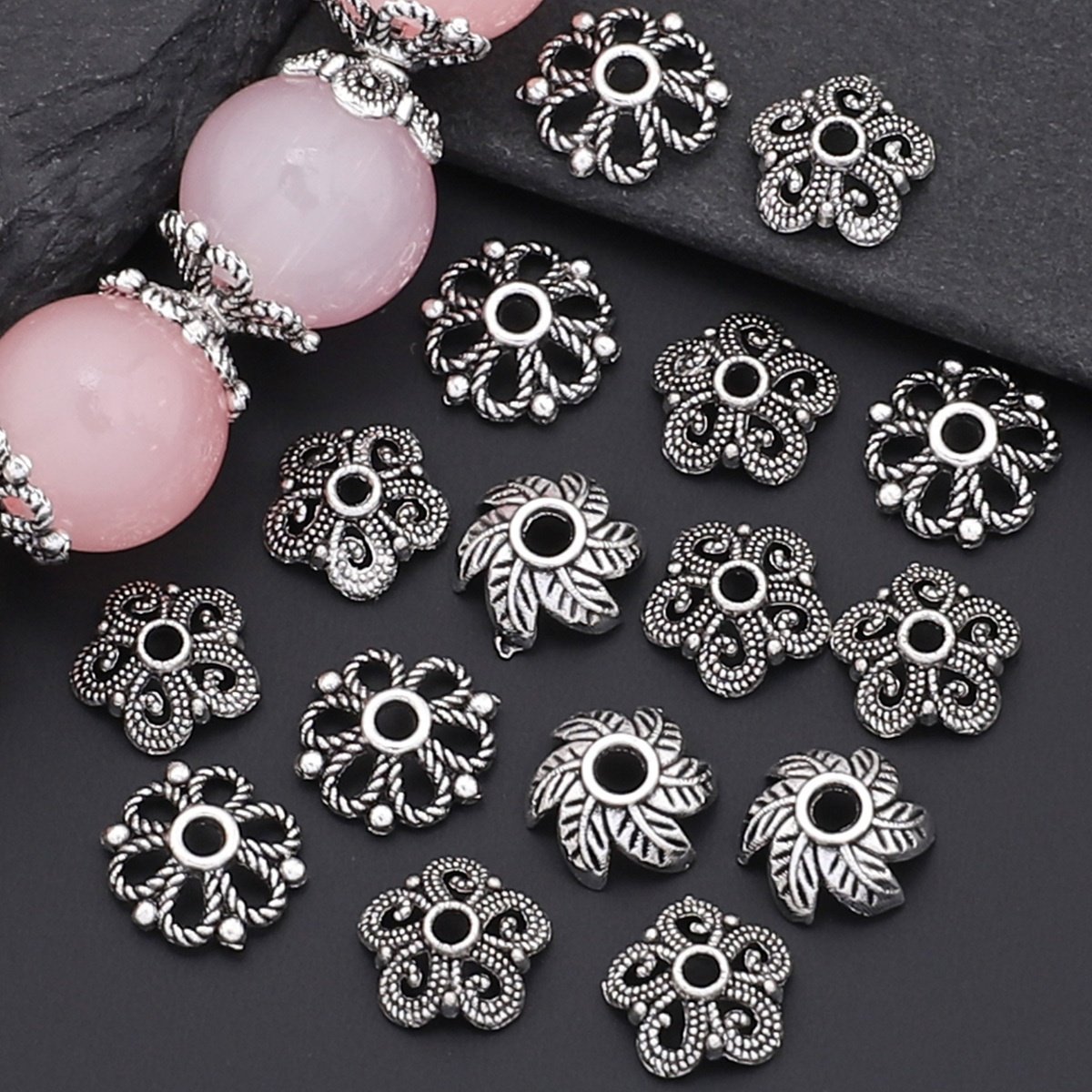 240 pièces/boîte 3 styles de capuchons en forme d'épissure à feuilles bouclées, couvre-chapeaux perlés, embouts frangés pour espacers et bases de création boucles d'oreille, patins fermoirs bracelets colliers connecteurs DIY accessoires matériels adapta