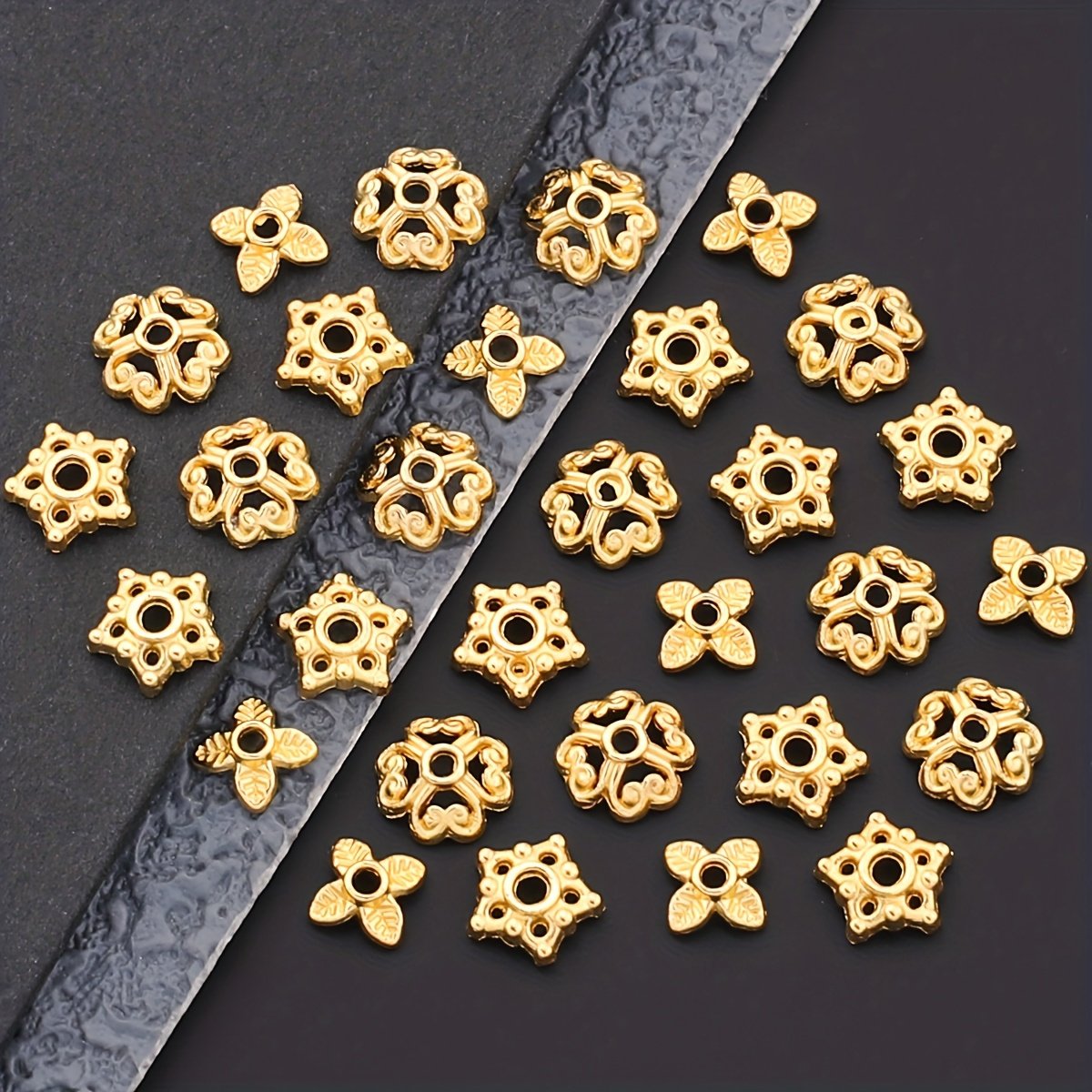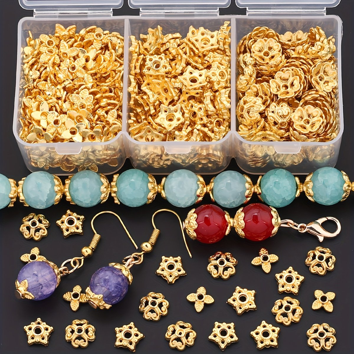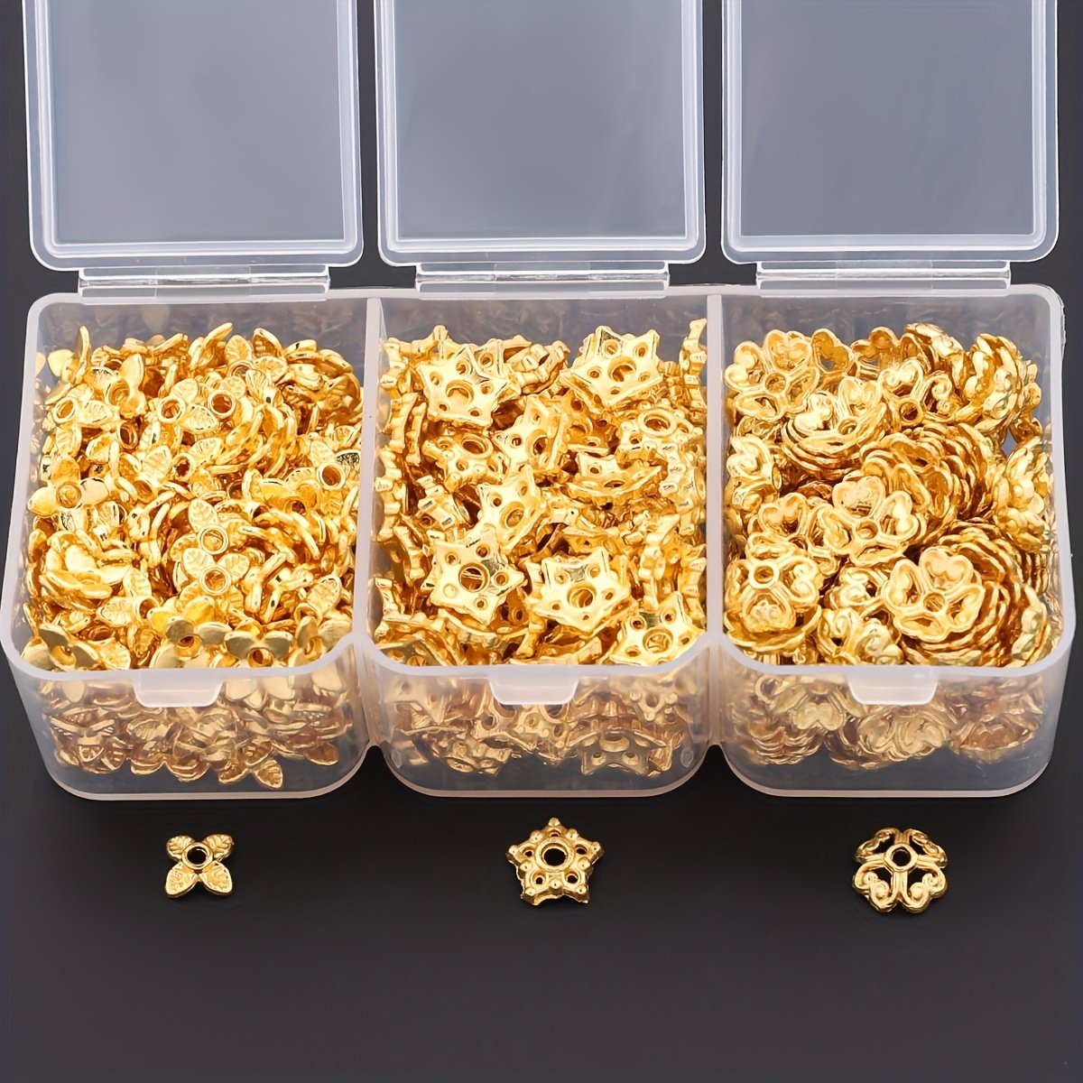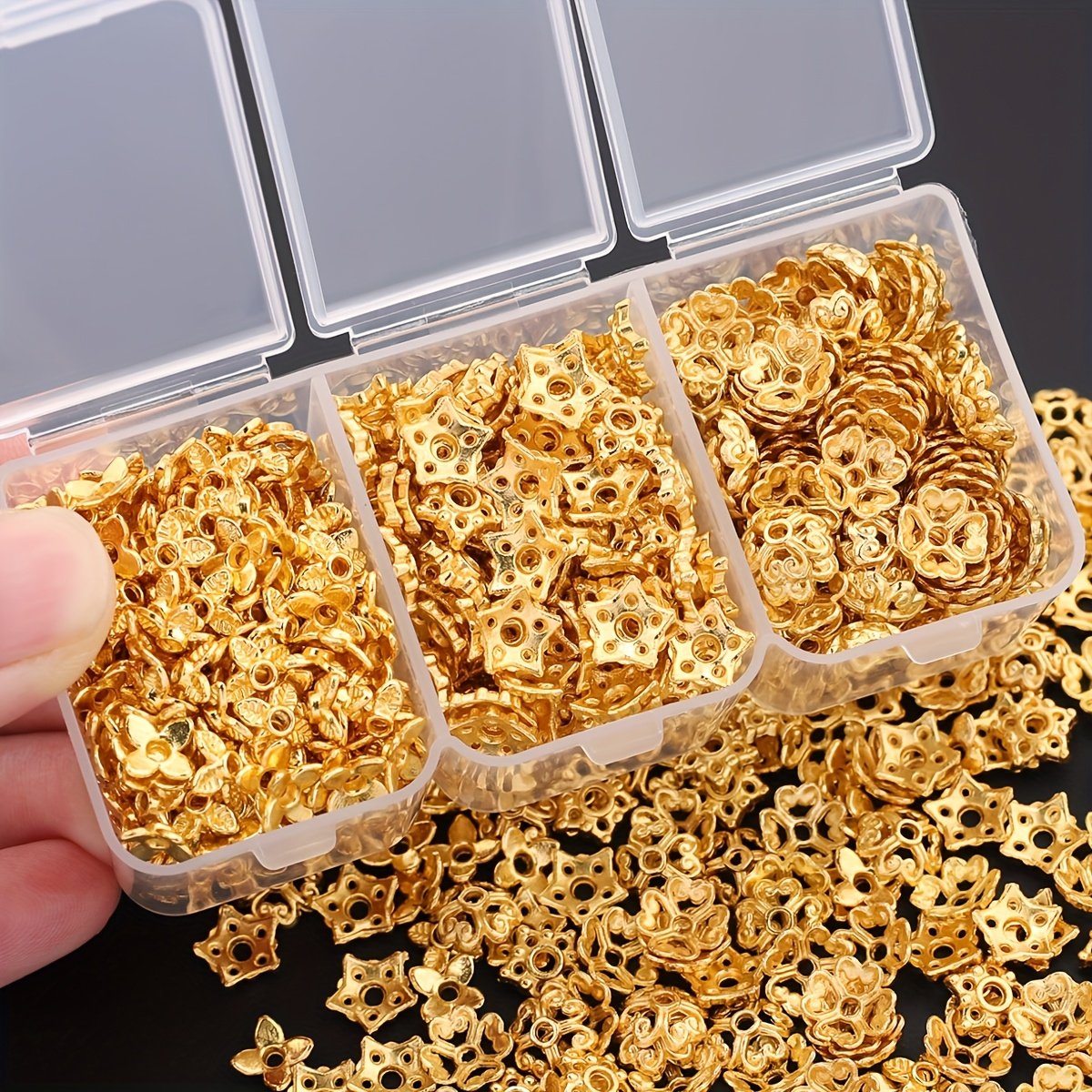 240 pièces/boîte Capuchons d'extrémité à motif pentagramme feuille dorée Kit en boîte Capuchon de fleur Couvre-perles Support de perles Capuchon de gland Capuchons d'extrémité Entretoises Support d'extrémité de boucle d'oreille Support de perle Coussin Ca