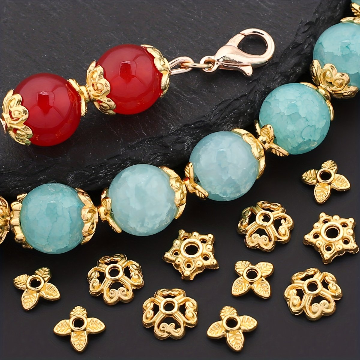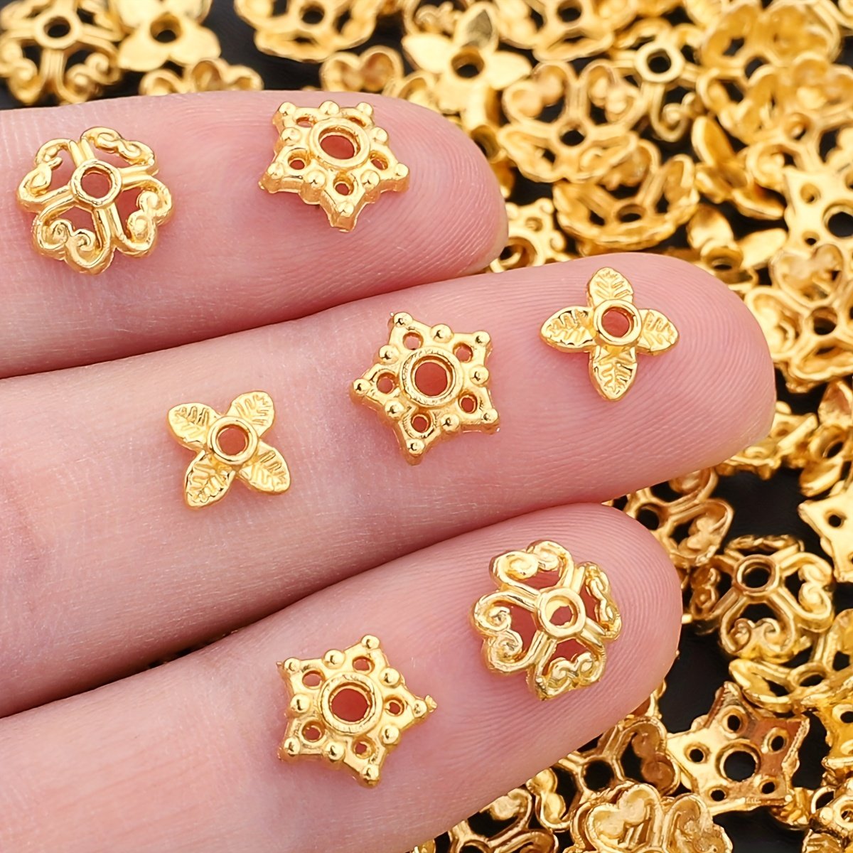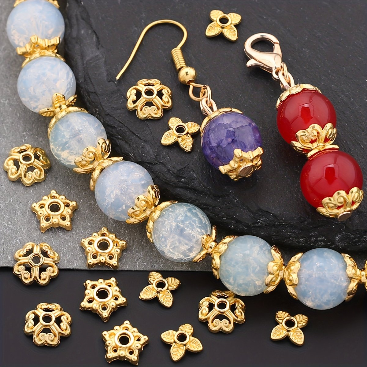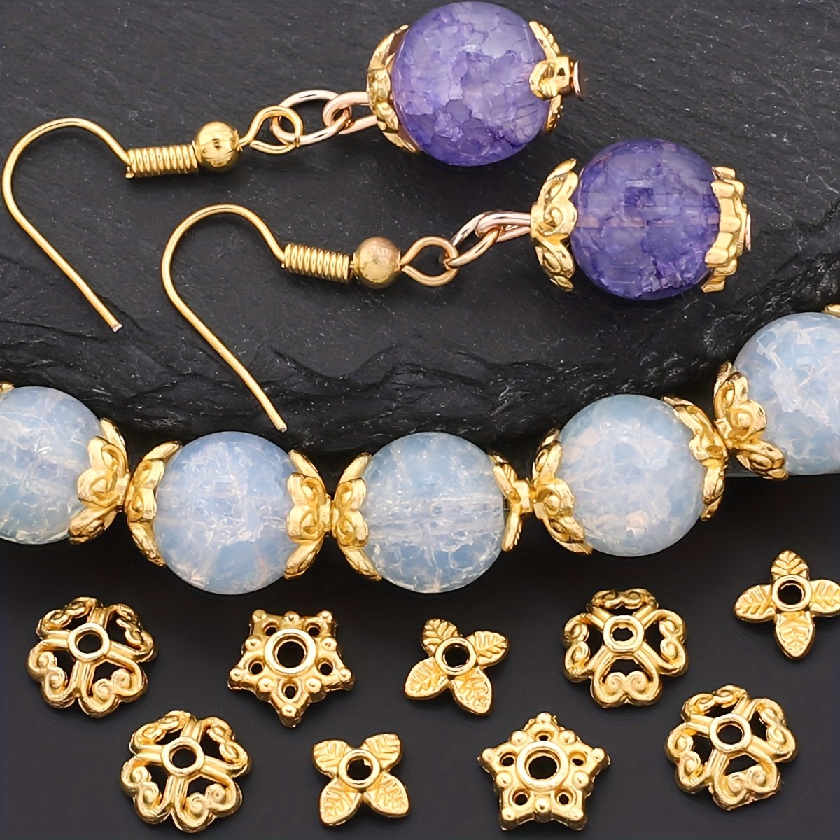 240 pièces/boîte Capuchons d'extrémité à motif pentagramme feuille dorée Kit en boîte Capuchon de fleur Couvre-perles Support de perles Capuchon de gland Capuchons d'extrémité Entretoises Support d'extrémité de boucle d'oreille Support de perle Coussin Ca