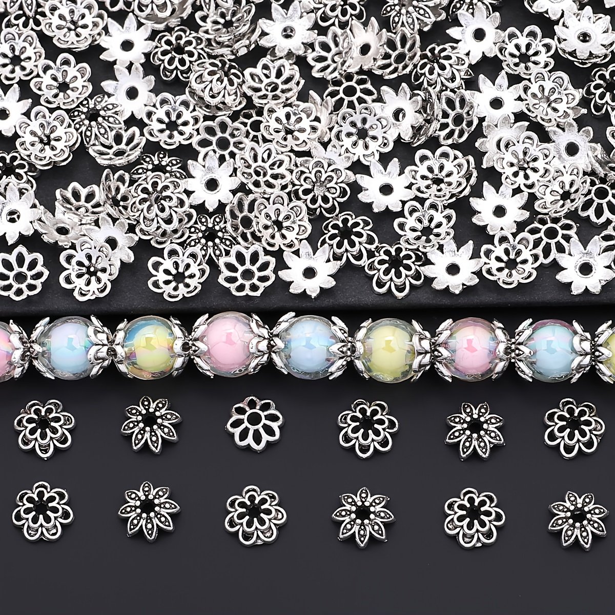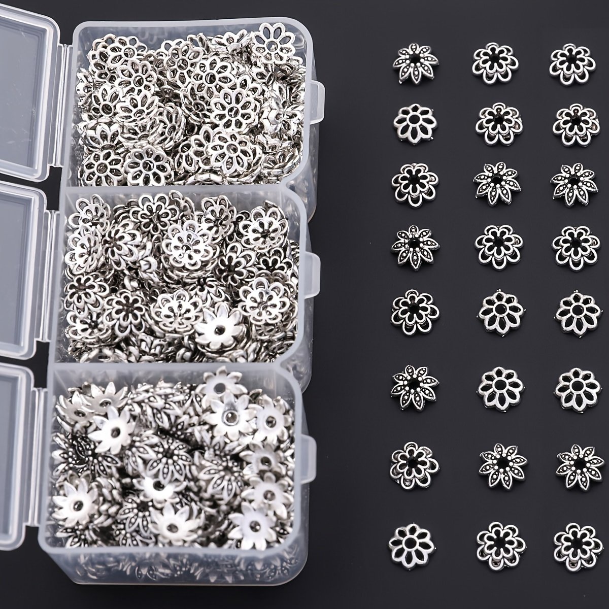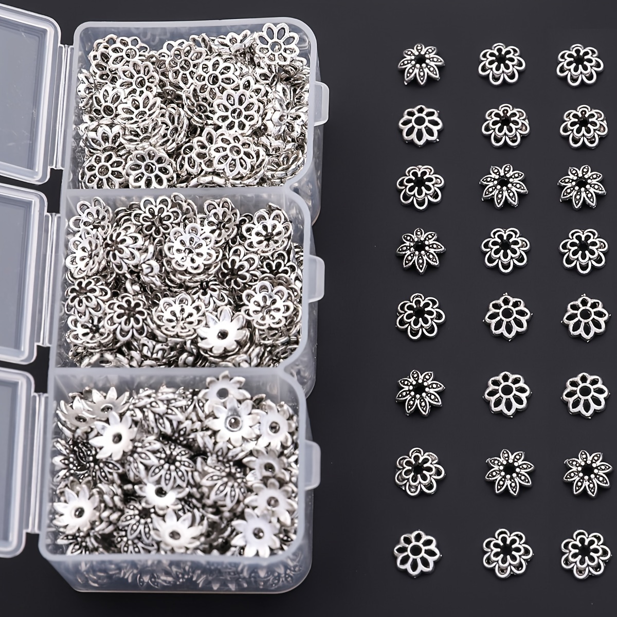 4 avis pour 240pcs par boîte, 3 styles de embouts floraux, embouts de fleurs, embouts de perles, embouts de pompons