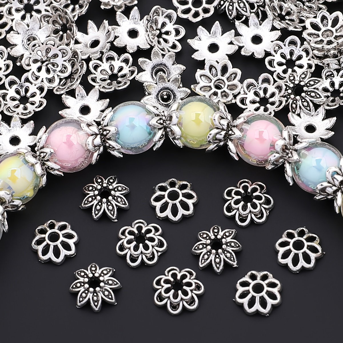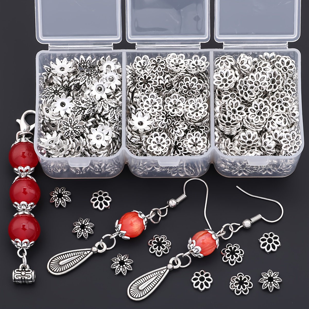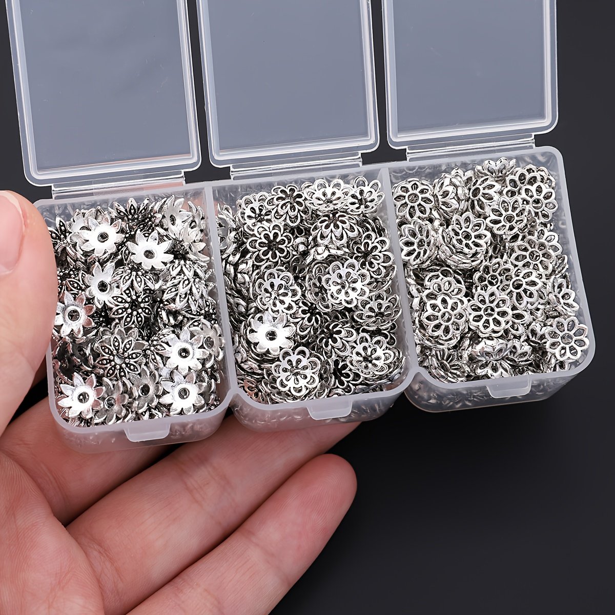 4 avis pour 240pcs par boîte, 3 styles de embouts floraux, embouts de fleurs, embouts de perles, embouts de pompons