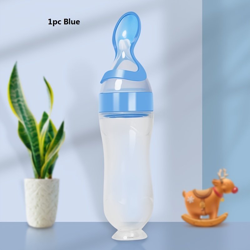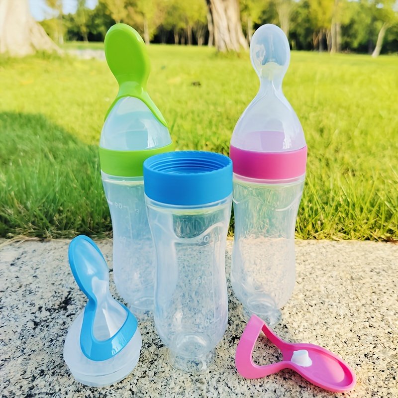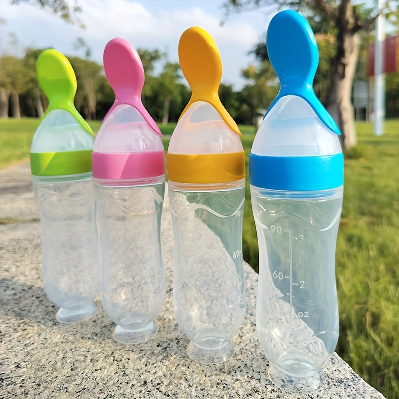 2pcs/1pc HOTMIR Tétine d'alimentation pour bébé en silicone avec cuillère et ventouse – Biberon pour tout-petits de 90 ml, &, Conception facile à nettoyer pour nourrissons et tout-petits, Parfait pour la pâte de riz, les purées et plus, Alimentation des t