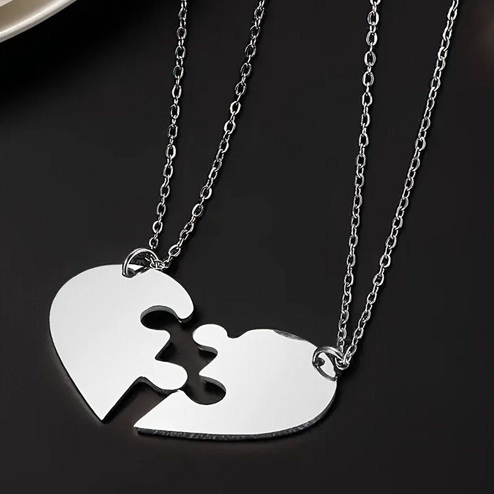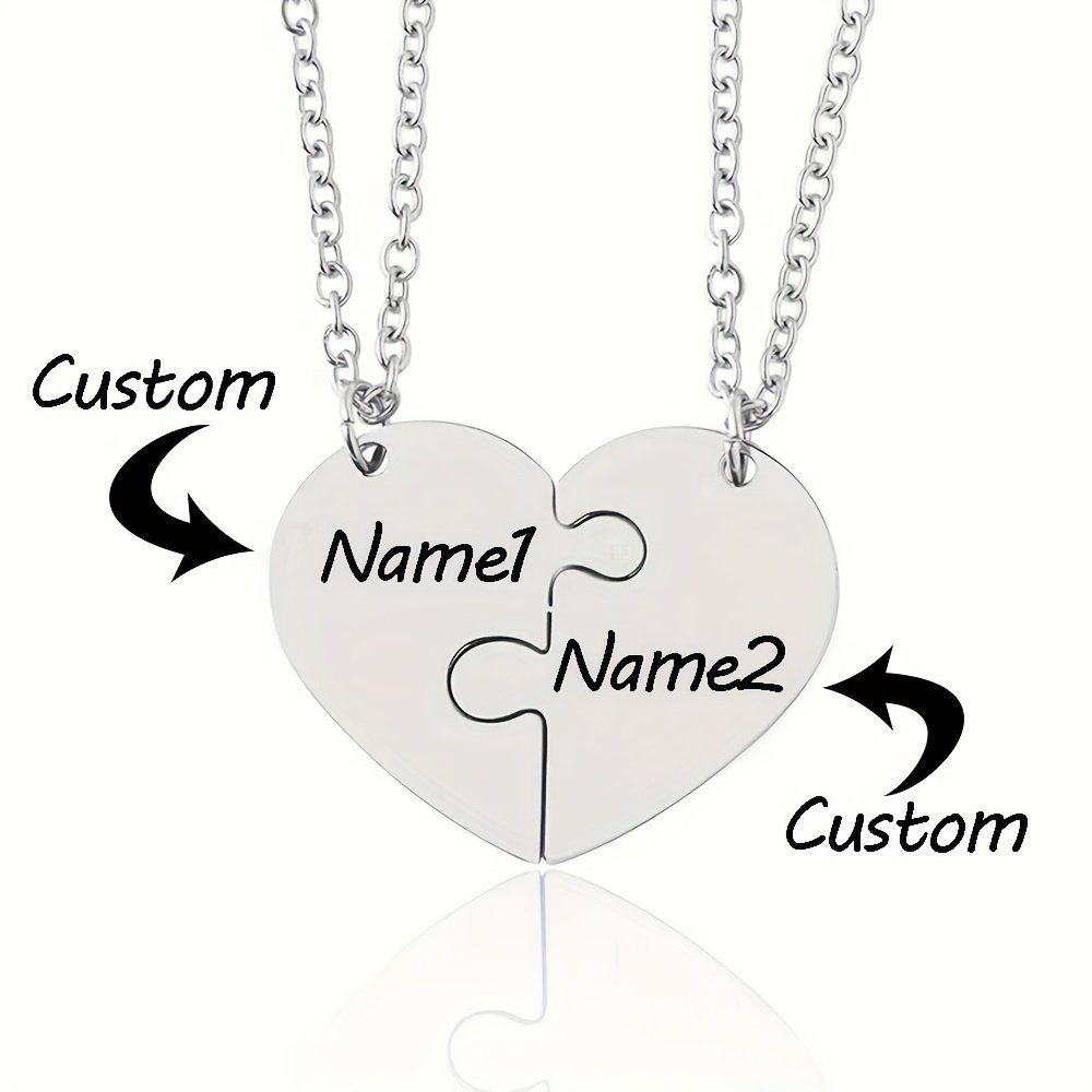2pcs Colliers de cœur en acier inoxydable personnalisables couple, meilleurs amis