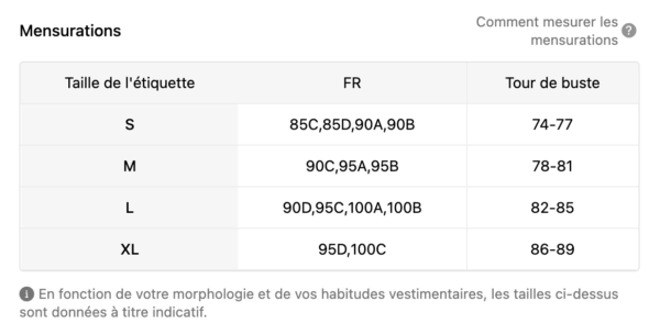 de très belle qualité taille juste et les bonnets sont parfaits. quand au prix c est incroyable merci