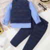 3 pièces Chemise à Manches Longues avec Nœud Papillon