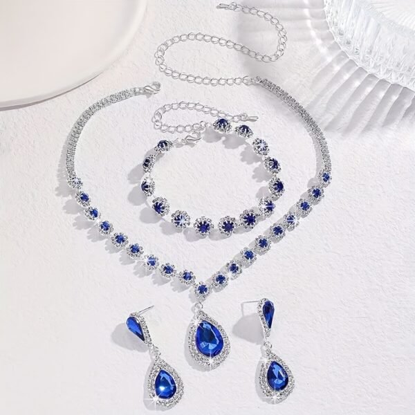 3 pièces : Collier + Boucles d’oreilles + Bracelet, Parure de Bijoux Fleur en Strass