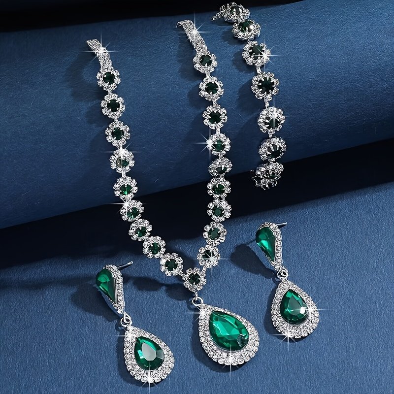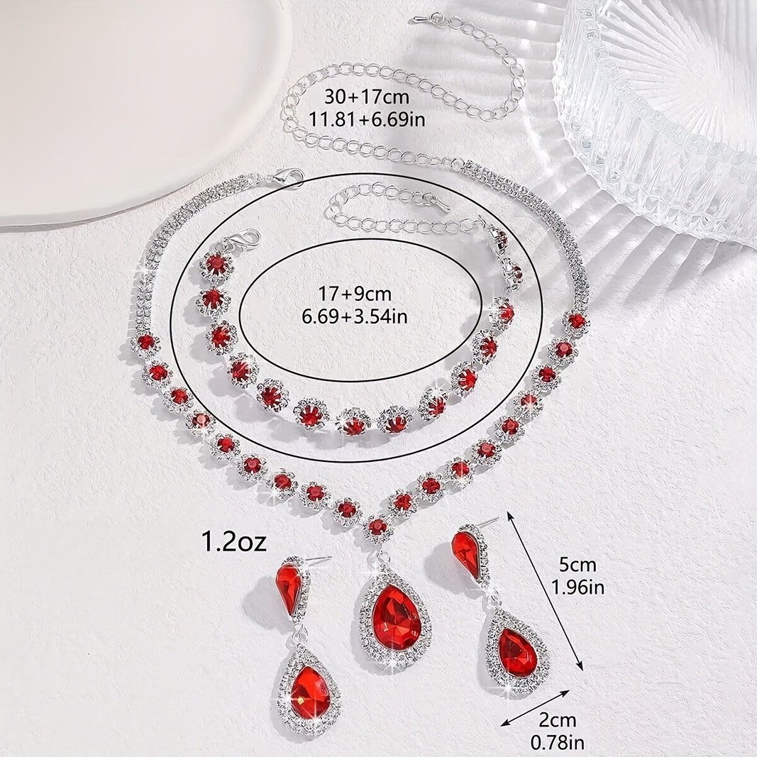 3 pièces : Collier + Boucles d’oreilles + Bracelet, Parure de Bijoux Fleur en Strass
