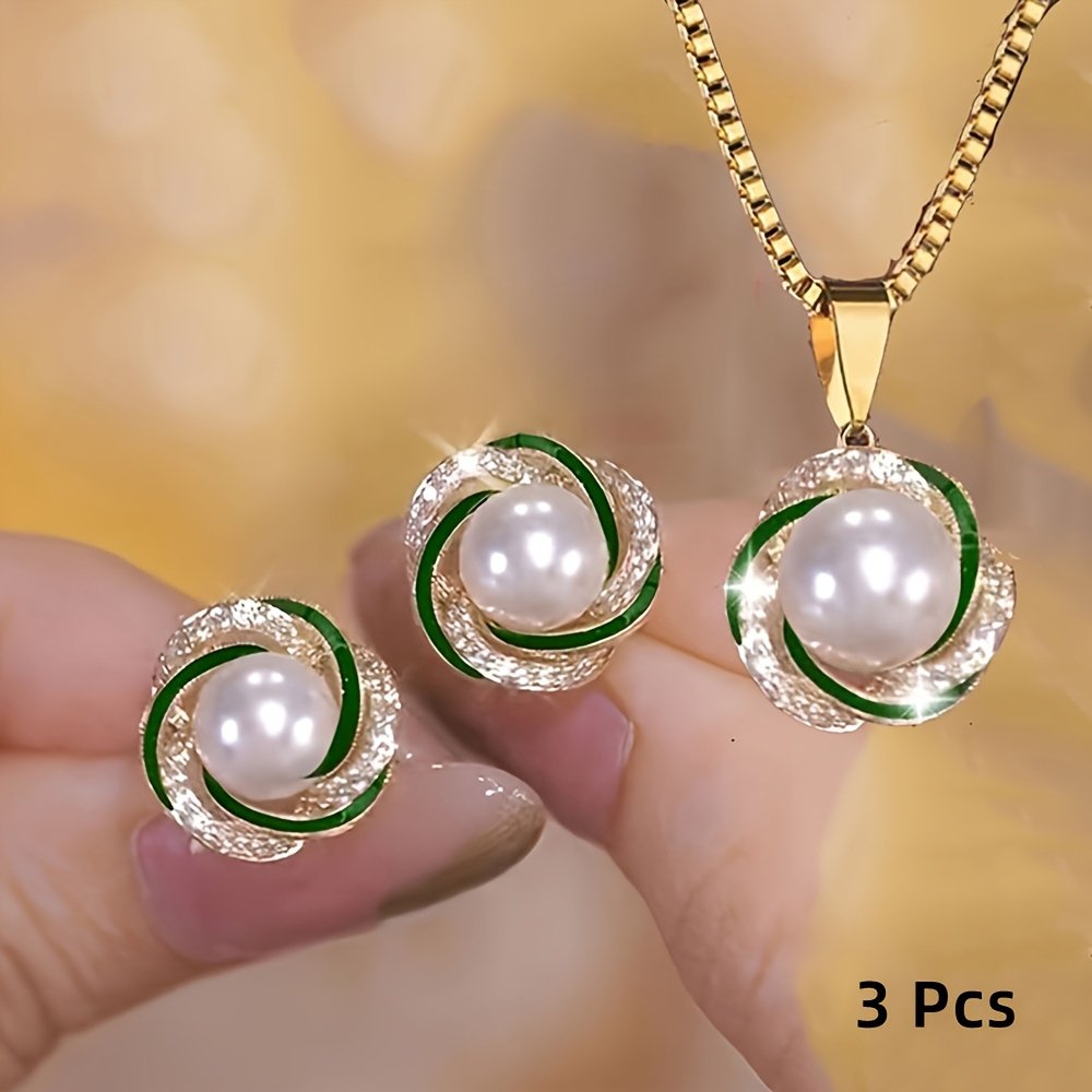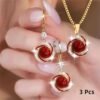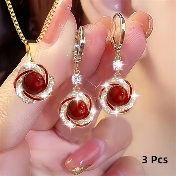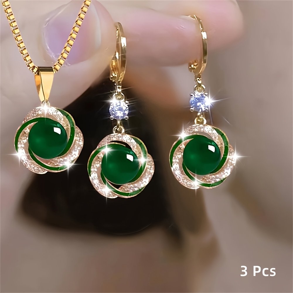 3 pièces Collier Pendentif + Boucles d’Oreilles Élégant – Bijoux Commémoratifs Incrustés, Création Personnalisée et Simple pour Fêtes – Cadeau de Luxe Scintillant avec Charme Exquis – Ensemble Haut de Gamme pour Festivals
