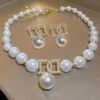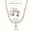 3 pièces de bijoux élégants d’inspiration vintage avec pendentifs en lettres incrustées de strass, collier et boucles d’oreilles avec perles et perles – Alliage, parfait pour les femmes, les mariées, les tenues quotidiennes et de mariage, cadeau idéal de Noël, polyvalent pour toutes les saisons, bijoux de mariage | Design vintage-inspired | Bijoux durables