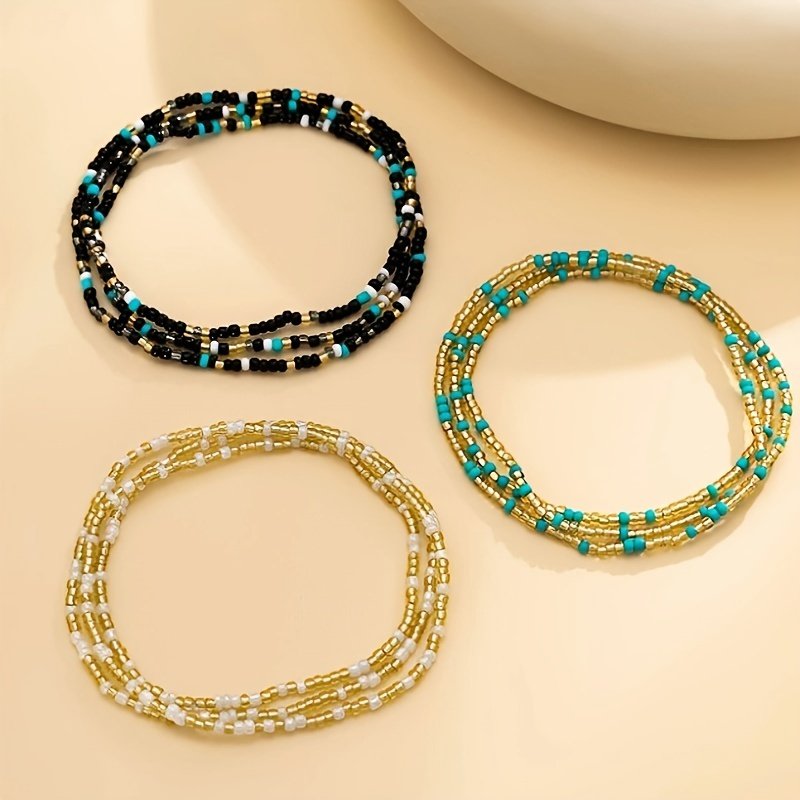 3 pièces Perles de Riz Élastiques Colorées pour Plage d’Été