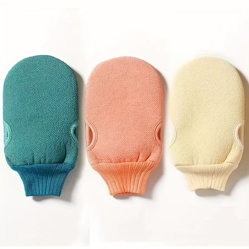 3 serviettes exfoliantes double face avec gants de gommage