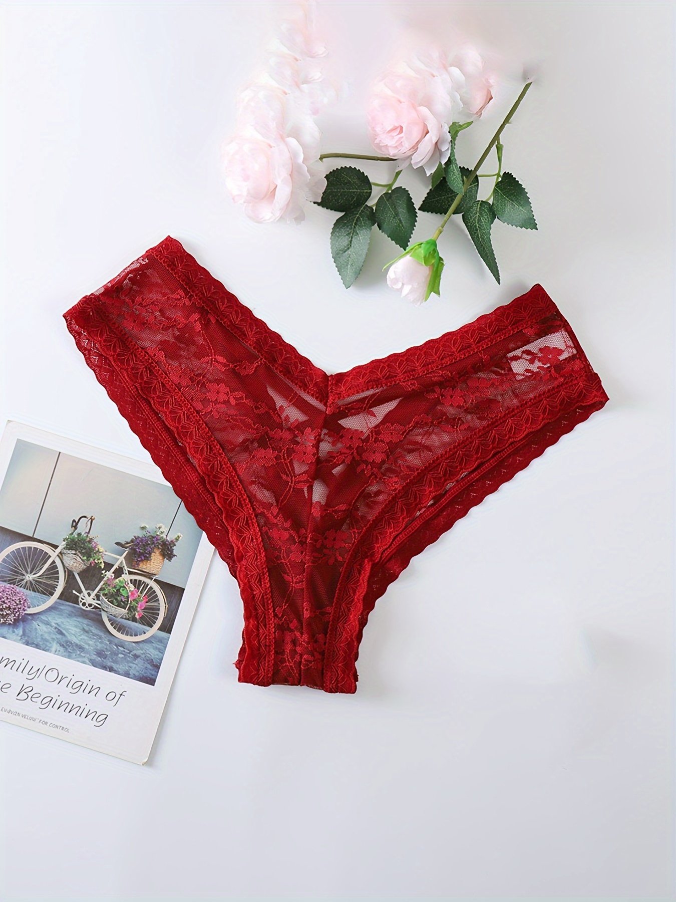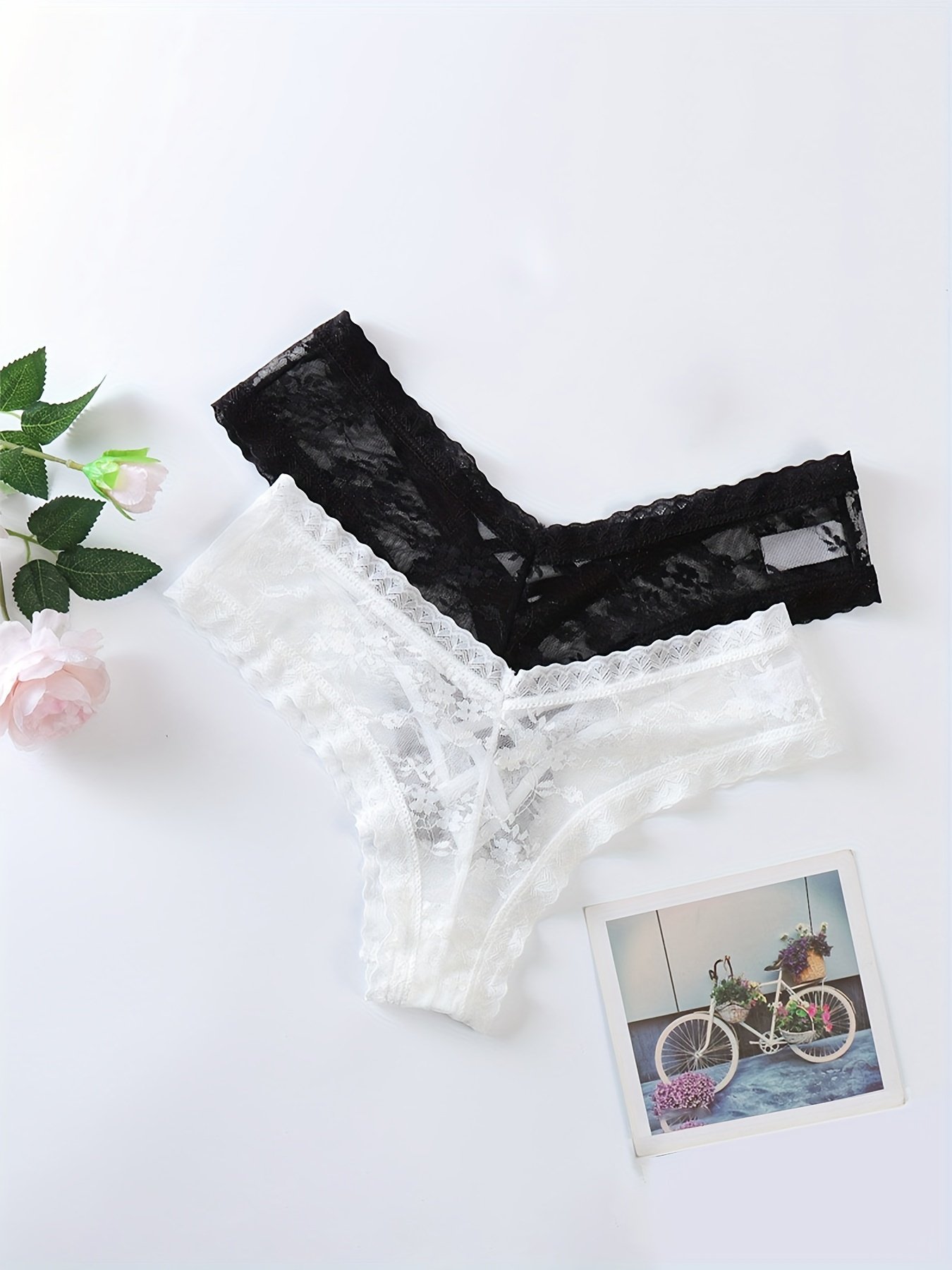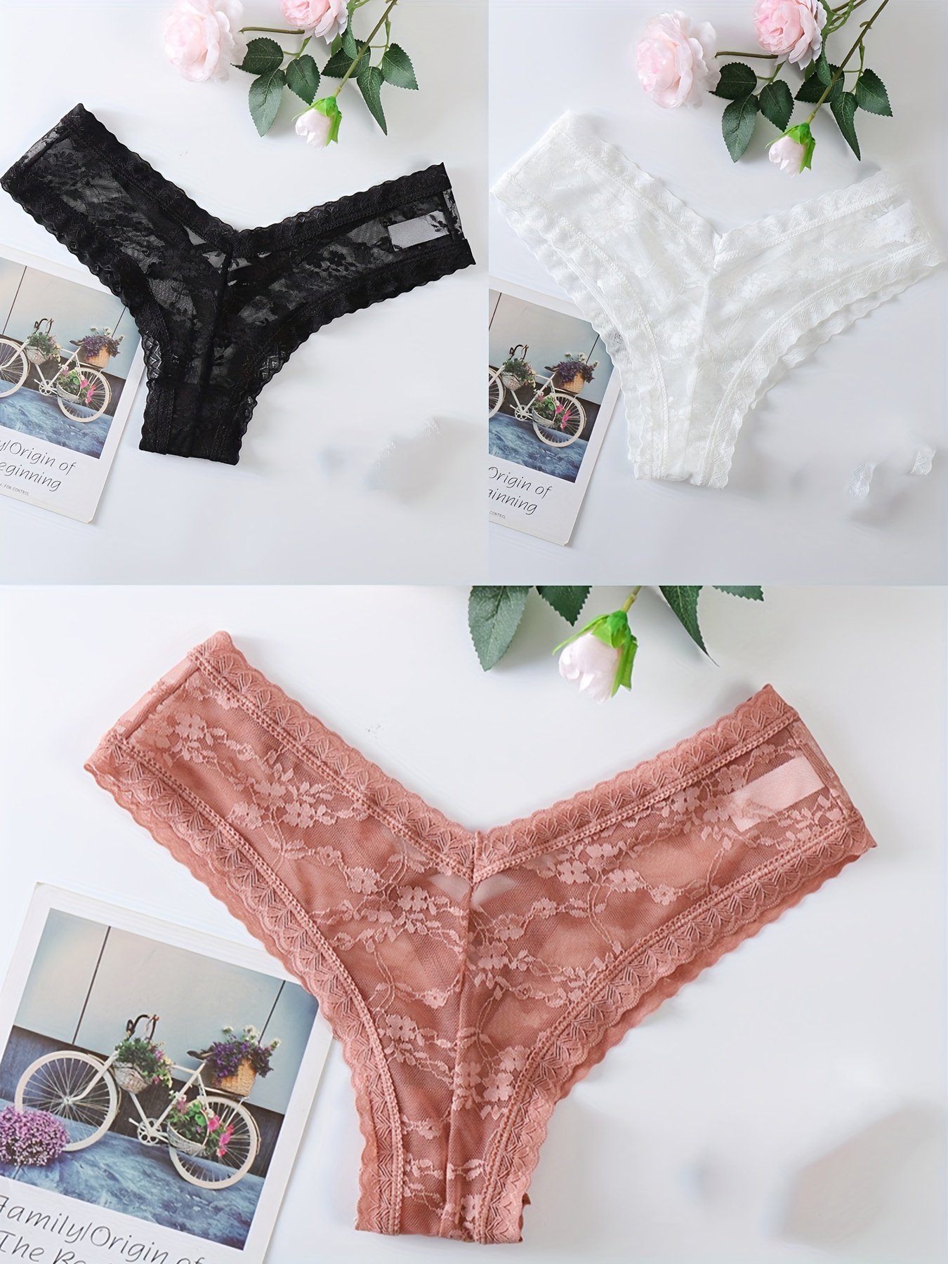 3pcs Culottes Sexy en Dentelle pour Femmes avec Design Croisé – Noir, Rouge, Blanc