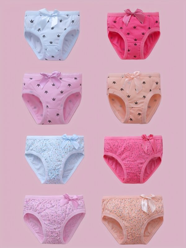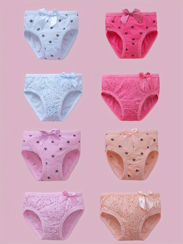 4 Culottes Filles avec Nœud – Sous-vêtements Triangle Doux et Respirants, Imprimé Intégral & Détail Nœud Mignon, Taille Moyenne pour Petites Filles (Pack de 4) – Lot de 4 Culottes Confortables Toutes Saisons pour 4 Filles