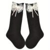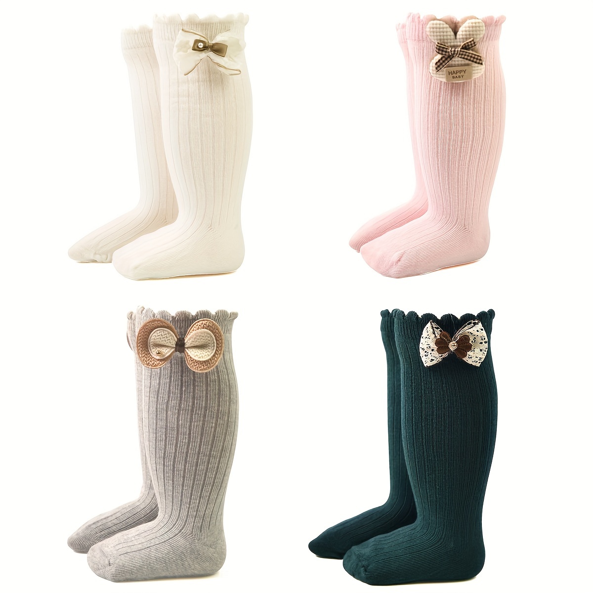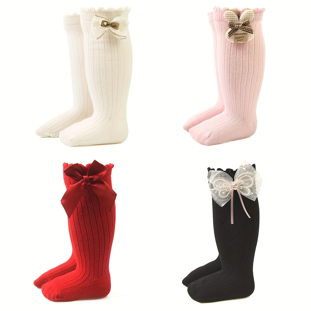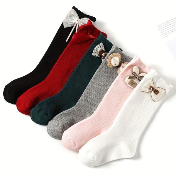 4 Paires de Chaussettes Hautes pour Bébés Filles avec Grandes Nœuds