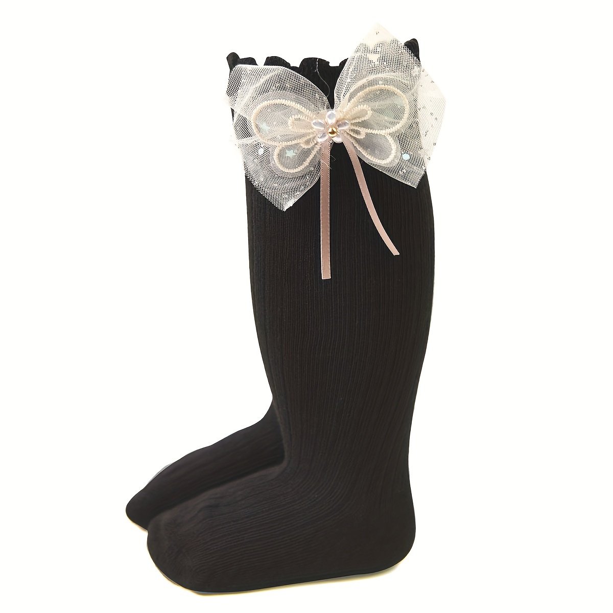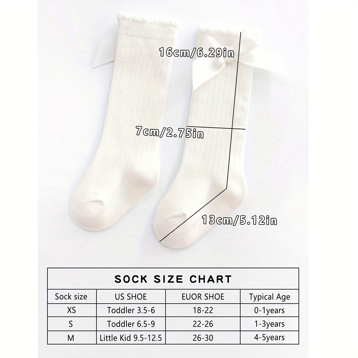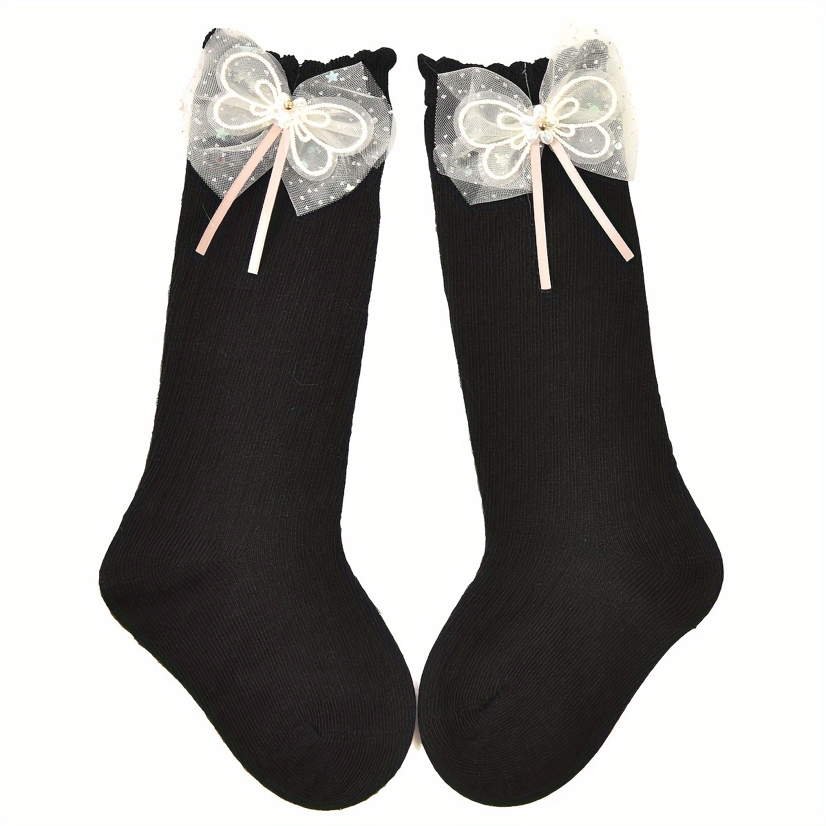 4 Paires de Chaussettes Hautes pour Bébés Filles avec Grandes Nœuds