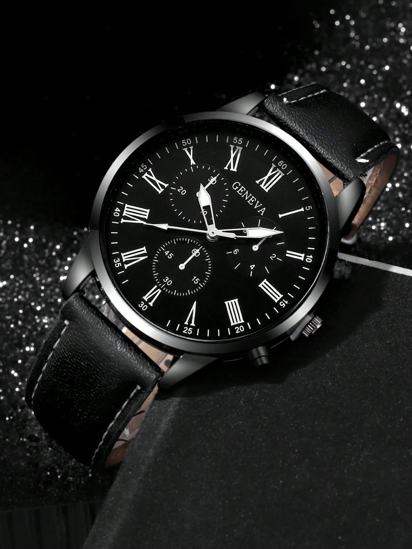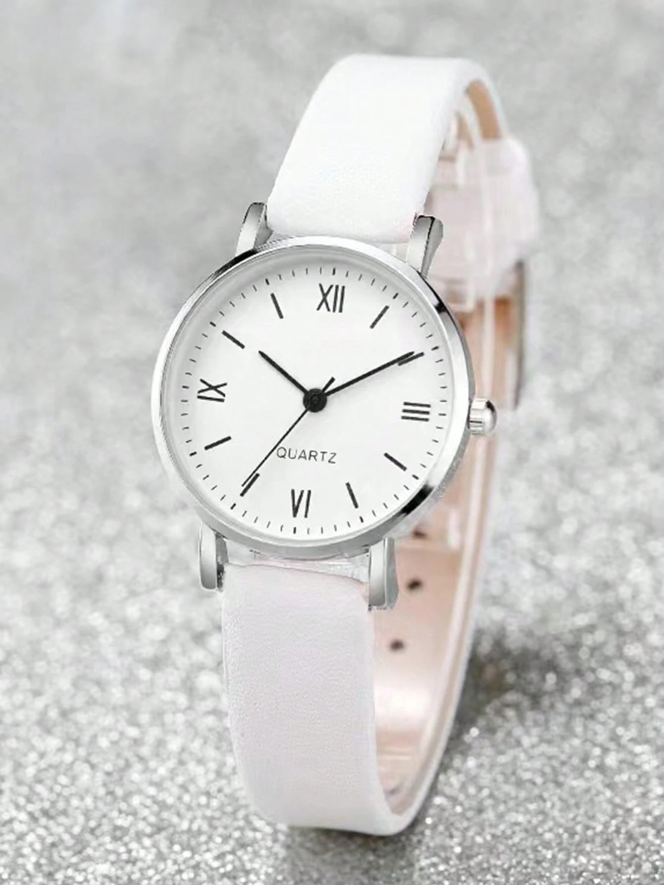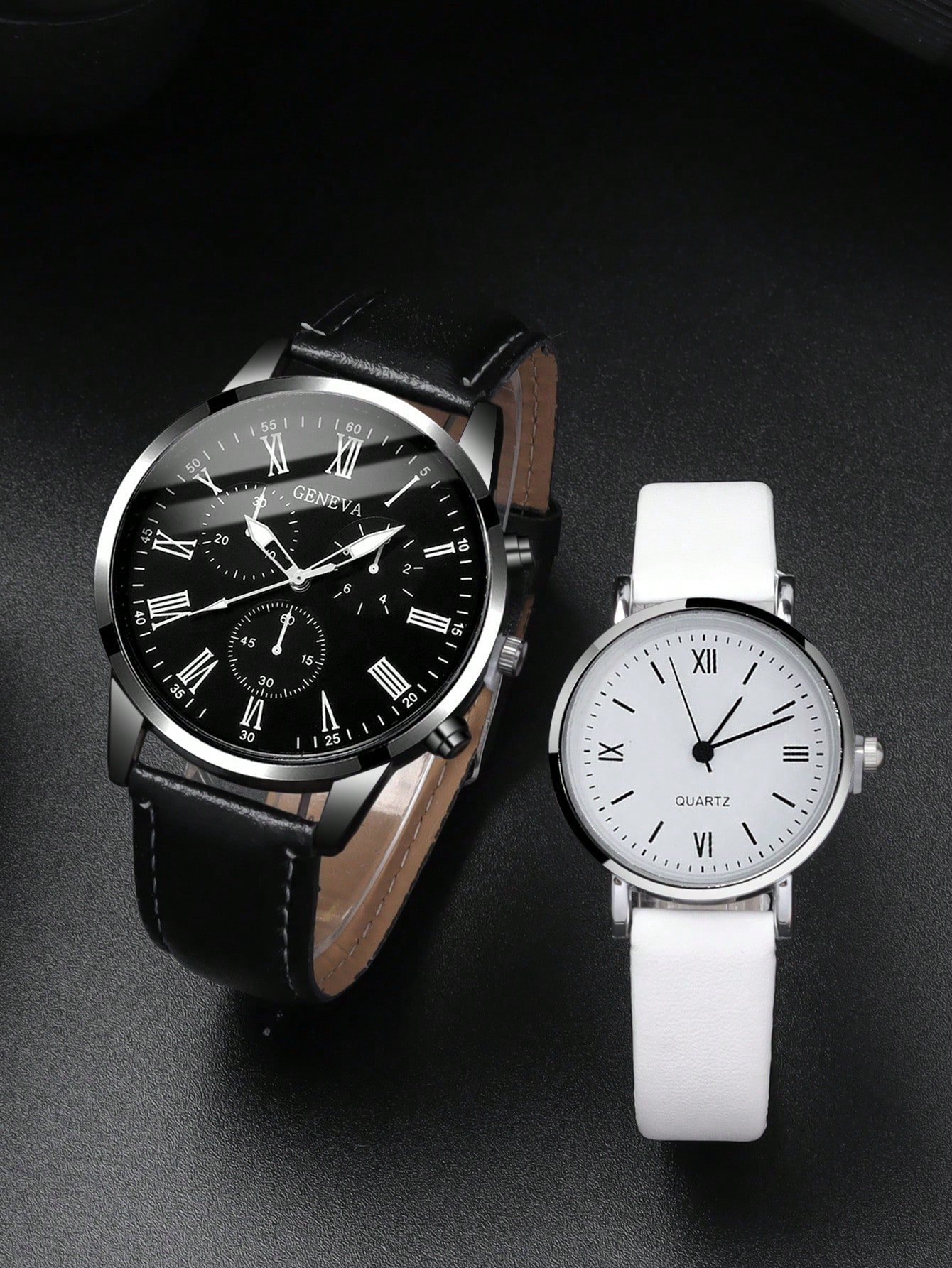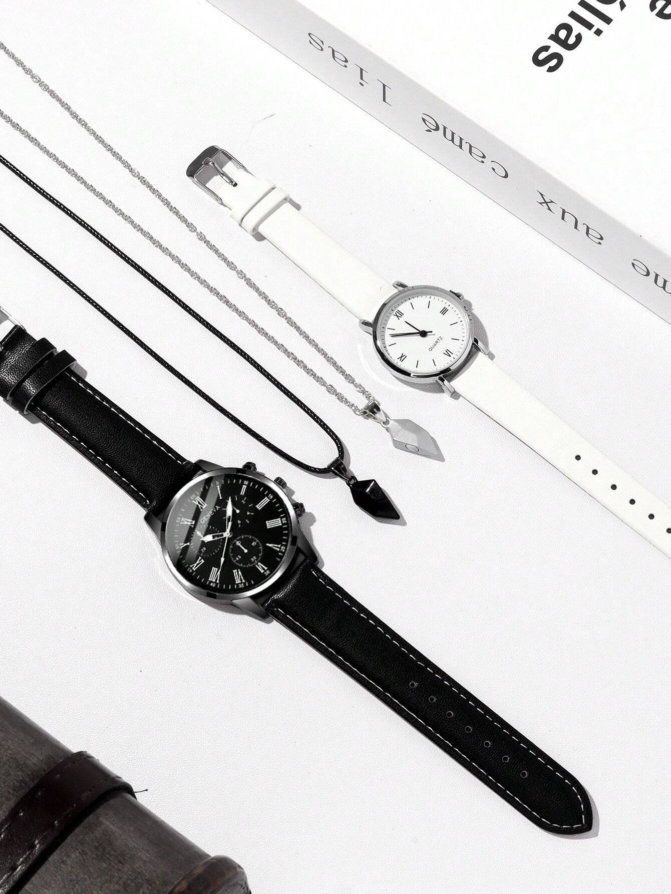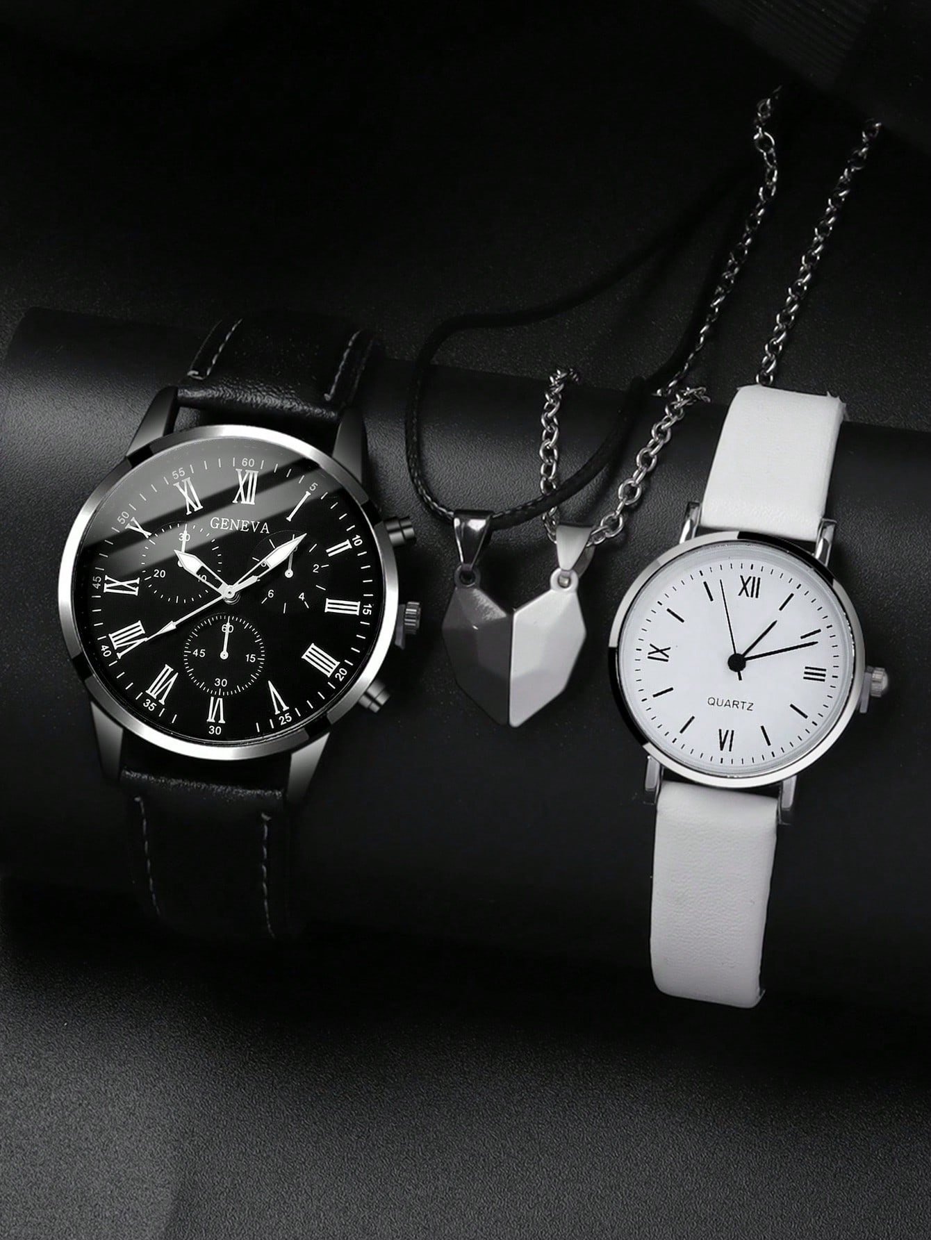 4 pièces Cadeaux à la mode et raffinés, ensemble de cadeaux avec montre ronde en quartz simple, pendentif avec logo rond pour homme et femme, et collier de couple avec cœur