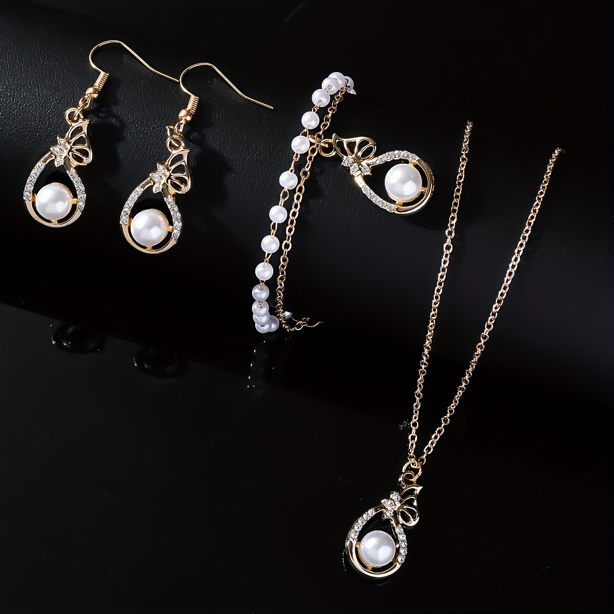 4 Pièces Ensemble de Bijoux Style Boho, Faux, Collier, Bracelet, Boucles d’Oreilles Combo pour Femmes, Polyvalent pour Tenue Quotidienne et de Fête