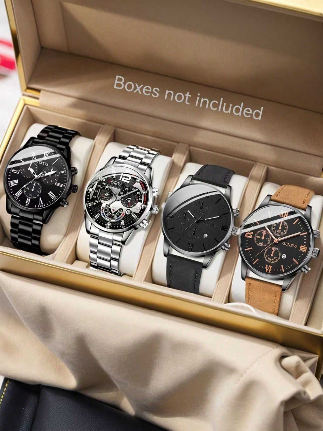 Soyez le premier à laisser votre avis sur “4 pièces Ensemble de montres à quartz de mode affaires homme aux motifs mixtes, convient pour un port quotidien, la décoration ou les cadeaux de vacances”