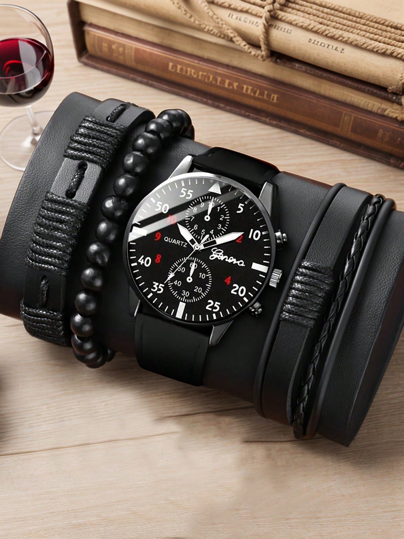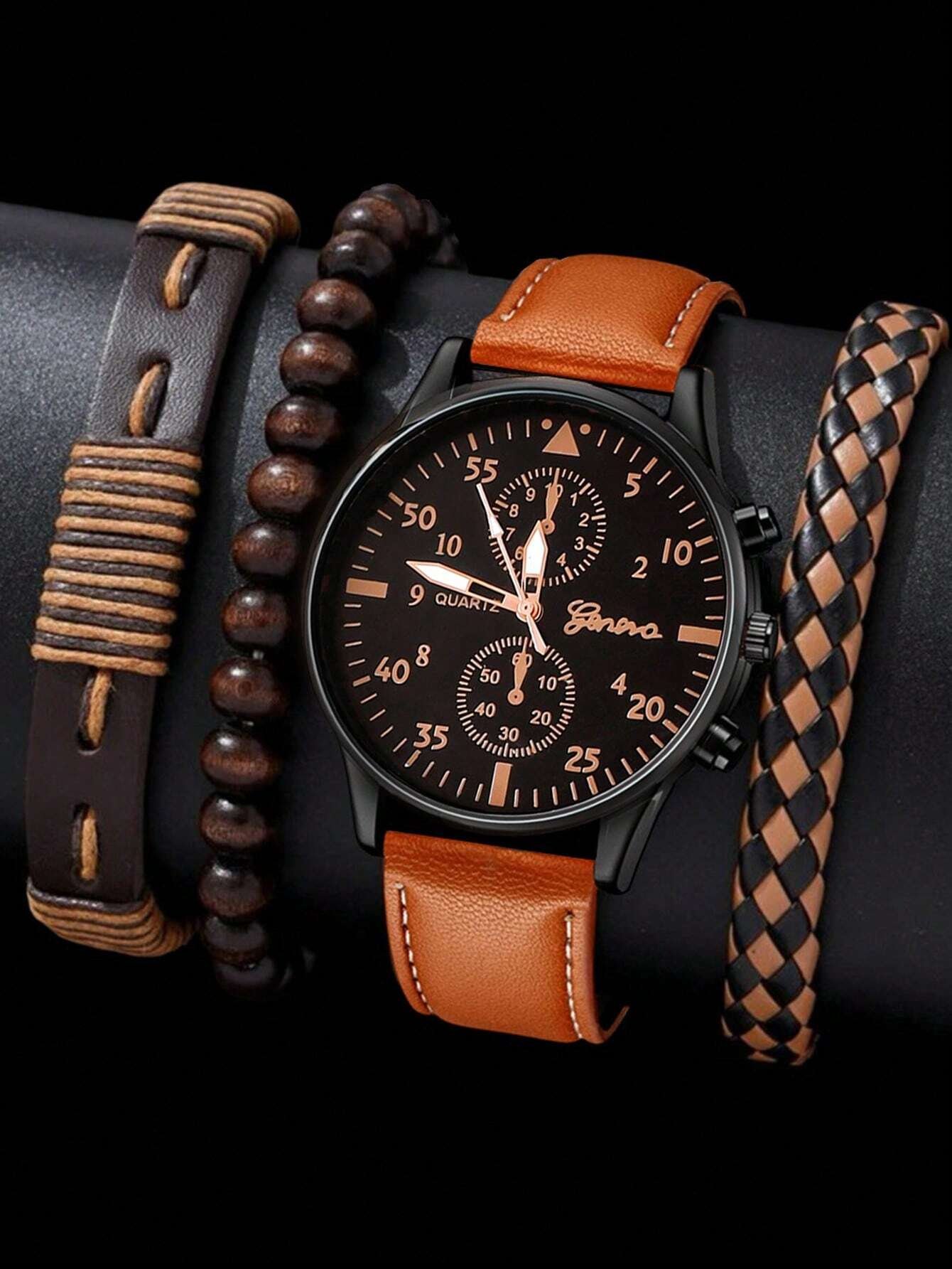4 PIÈCES Montre mode casual pour hommes avec bracelet simple, convient pour le port quotidien, idéal comme cadeau