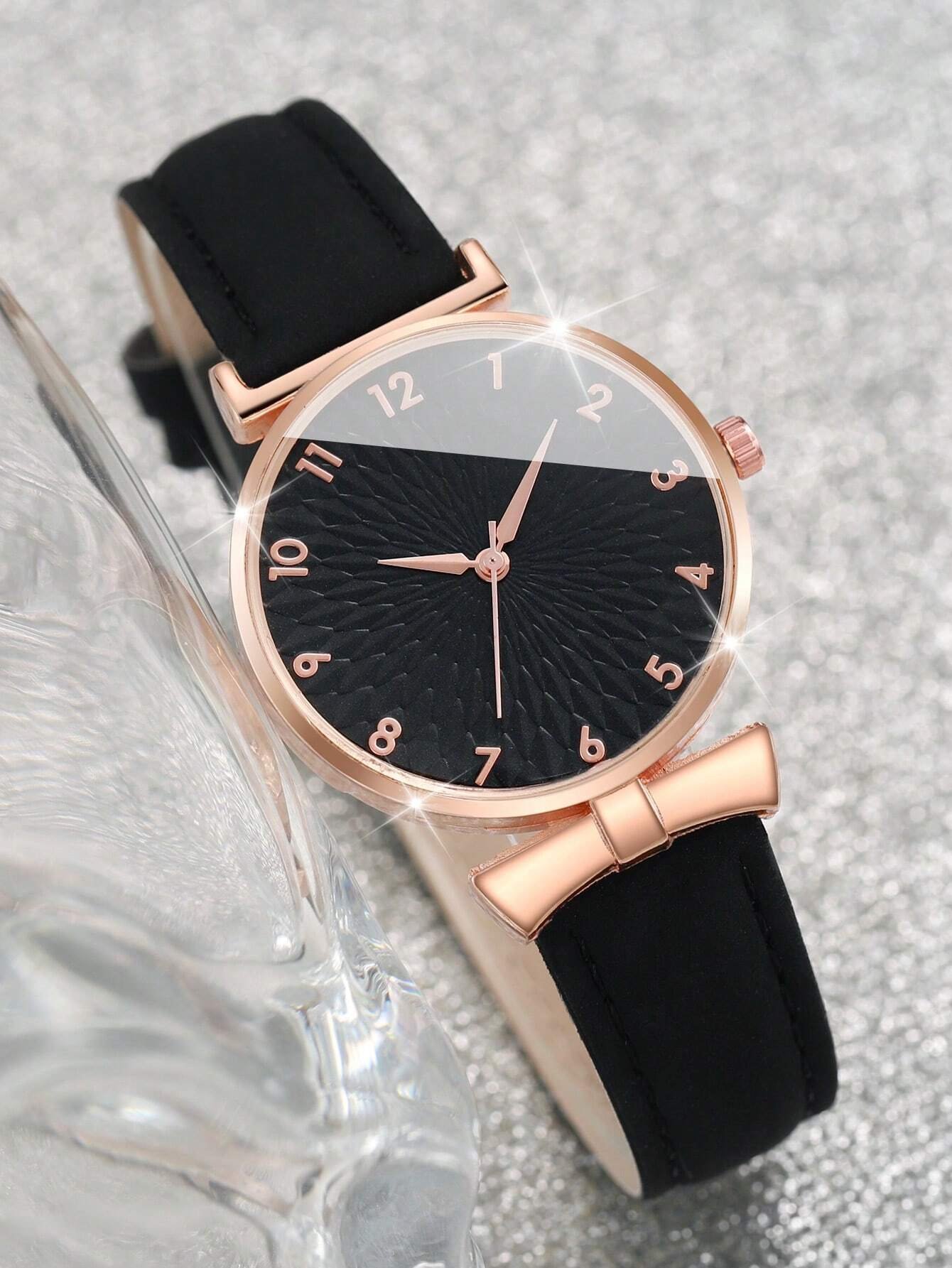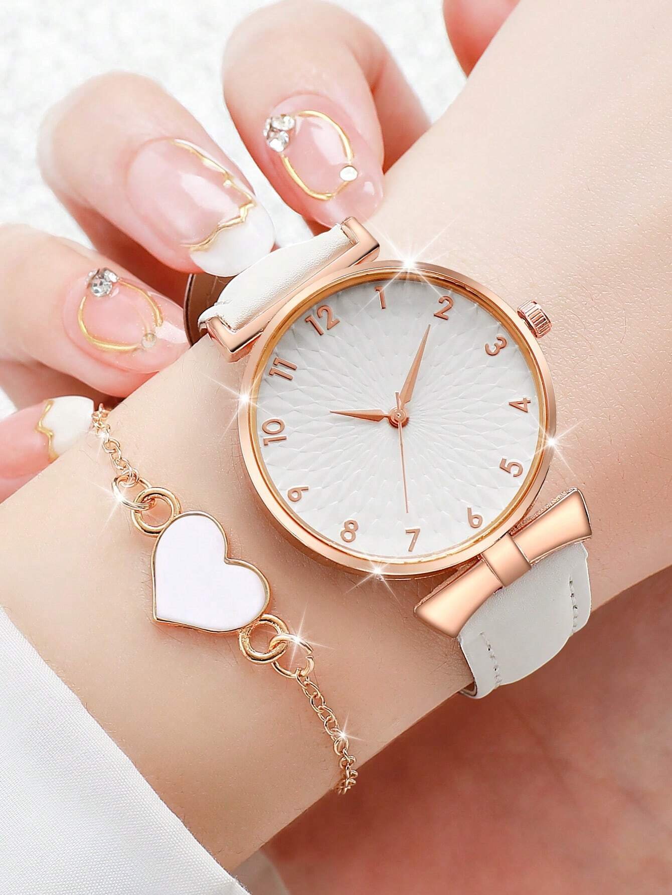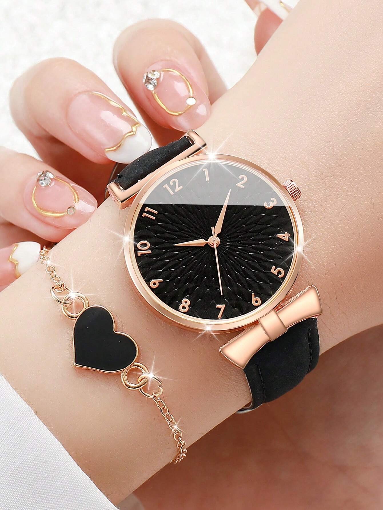 4 pièces/set Montre-bracelet à quartz à cadran digital simple et à la mode avec bracelet cœur, comme cadeau pour les étudiants retournant à l'école