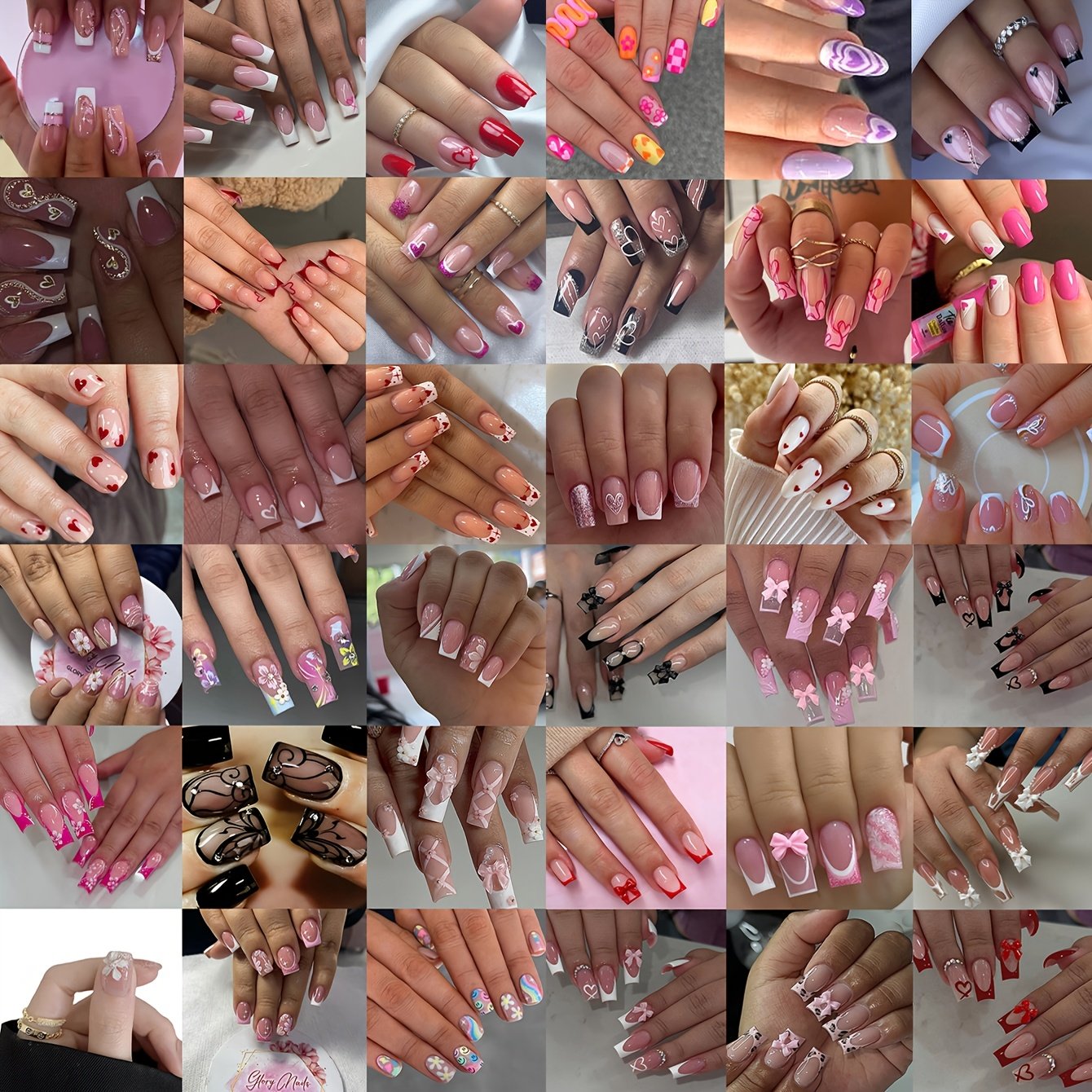 48 faux ongles brillants de style aléatoire – Embouts français haut de gamme – Paillettes – Cœurs – Papillons – Motifs de fleurs mignons au choix – Une variété de faux ongles – Manucures de qualité salon à la maison – Beaucoup de styles – Un mélange vibra
