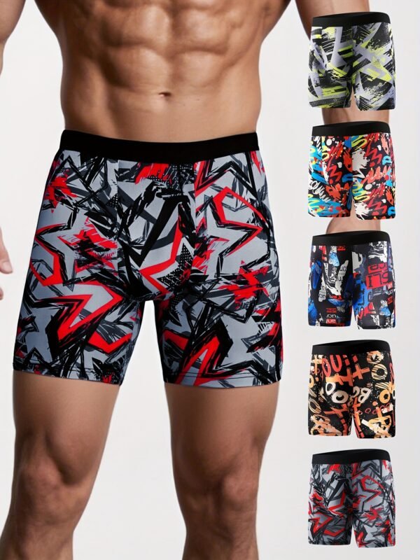 5 boxers longs pour hommes – Motif graffiti géométrique