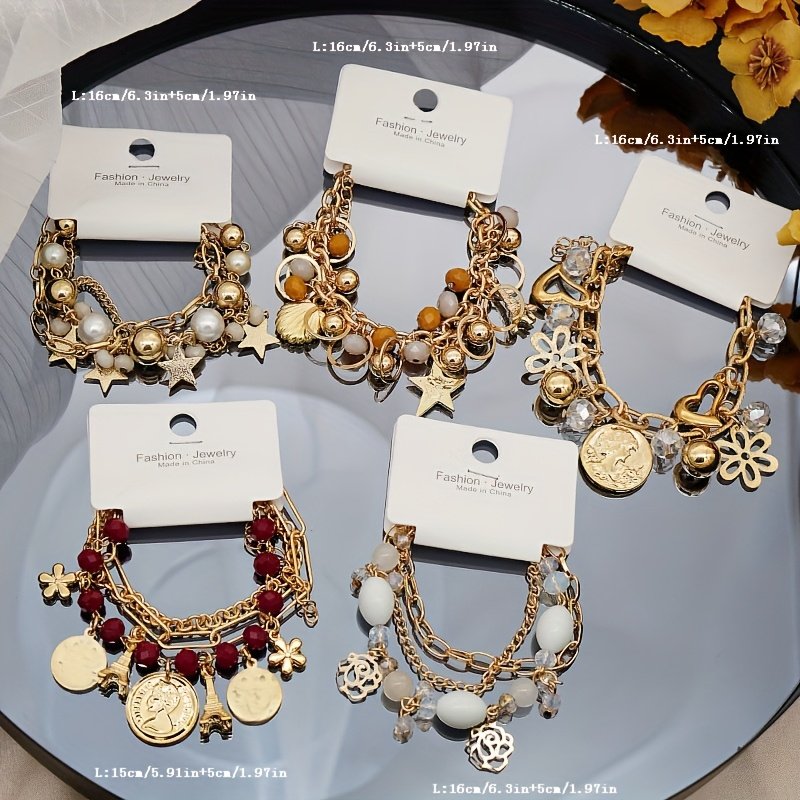 lot de 5 Bracelets Bohèmes à Perles Superposées – Bracelets Alliage Colorés avec Accents Turquoise